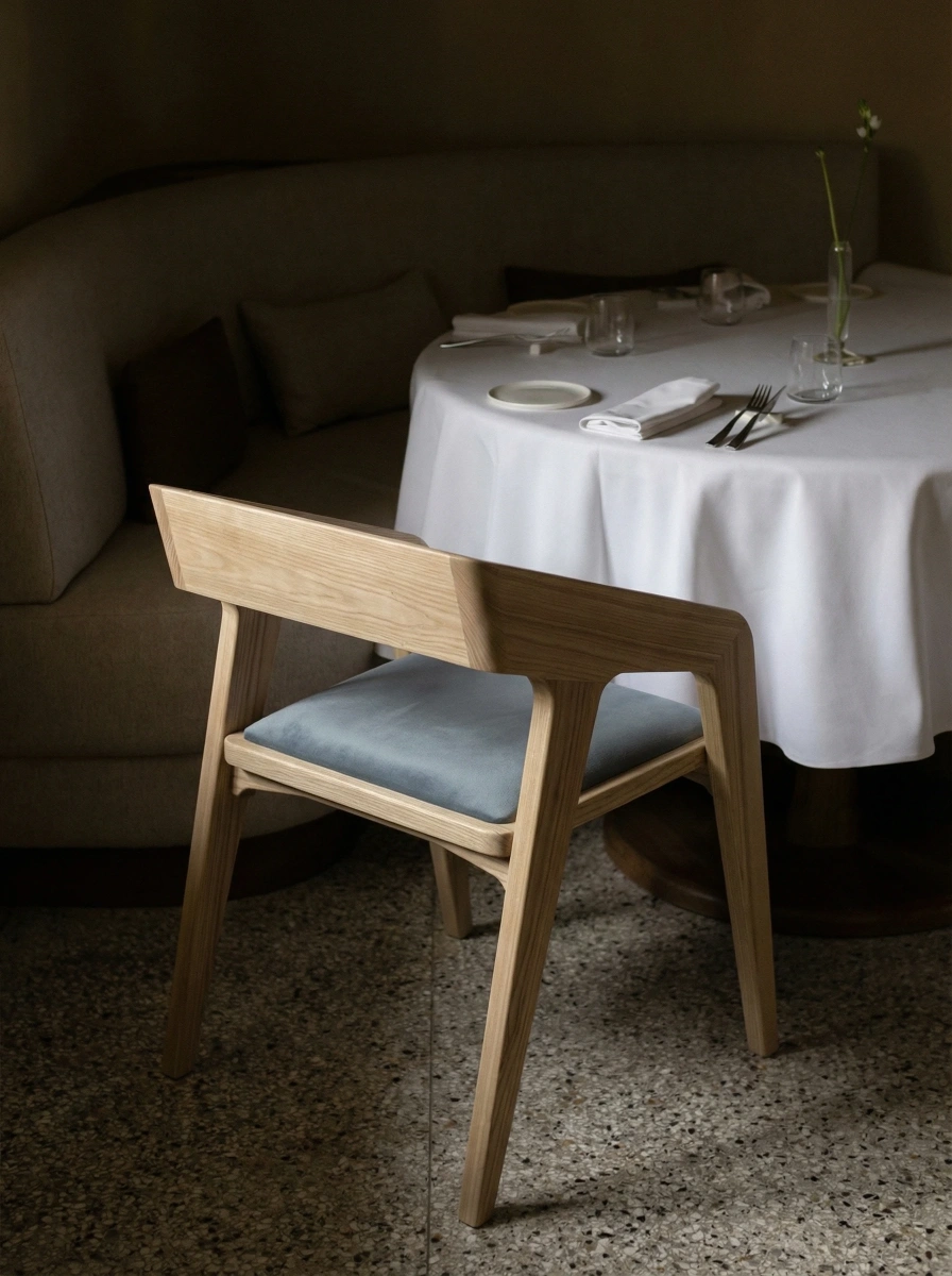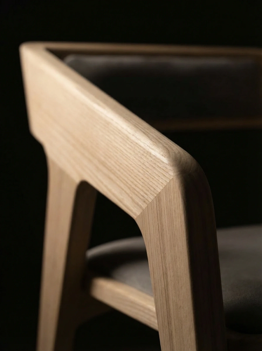 - Сочетание материалов (дерево + мягкая обивка сиденья) выполнено без вычурности, что соответствует минималистичному подходу.