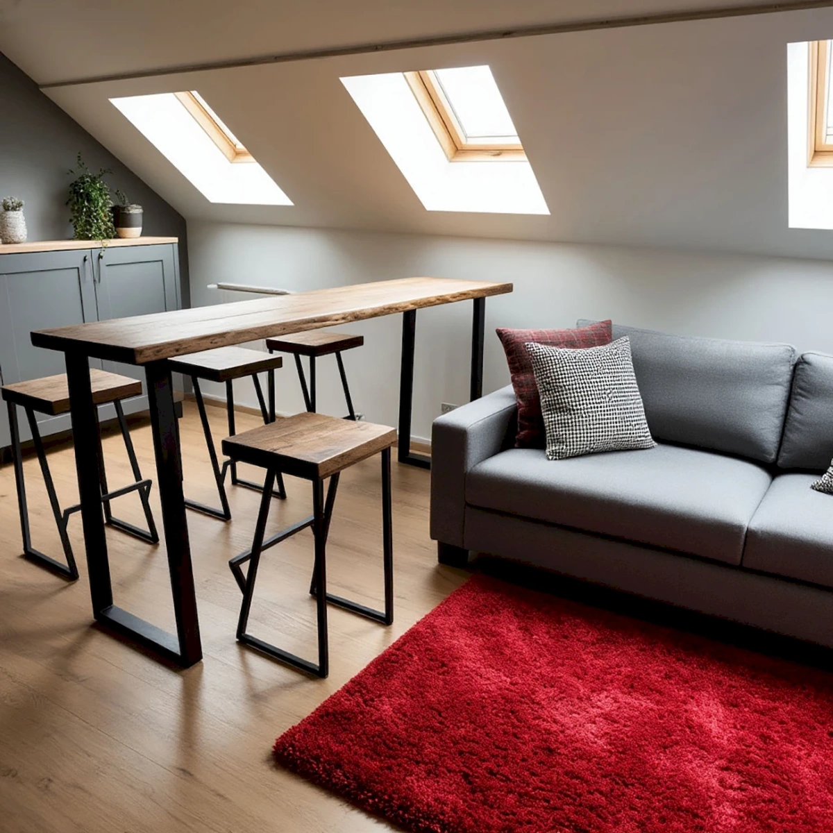 Сочетание металла и натурального дерева идеально соответствует эстетике лофта. Табурет станет ярким акцентом в интерьере с кирпичными стенами, бетоном и открытыми коммуникациями.
