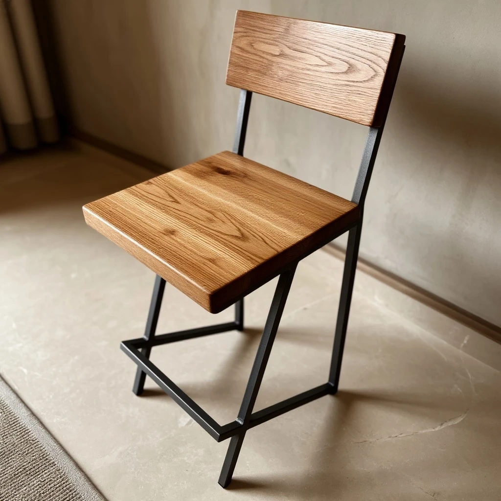 Индустриальный стиль: Металлические ножки и массивная древесина подчеркивают грубую эстетику бетона и металла.