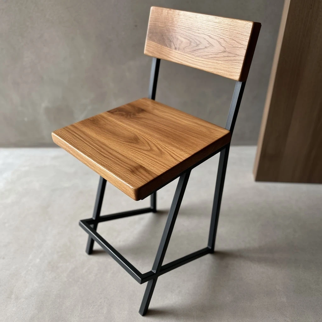 Ножки: Изготовлены из прочного металла с матовой черной порошковой покраской. Их геометричная, слегка угловатая форма придает современный индустриальный вид и гарантирует высочайшую устойчивость.