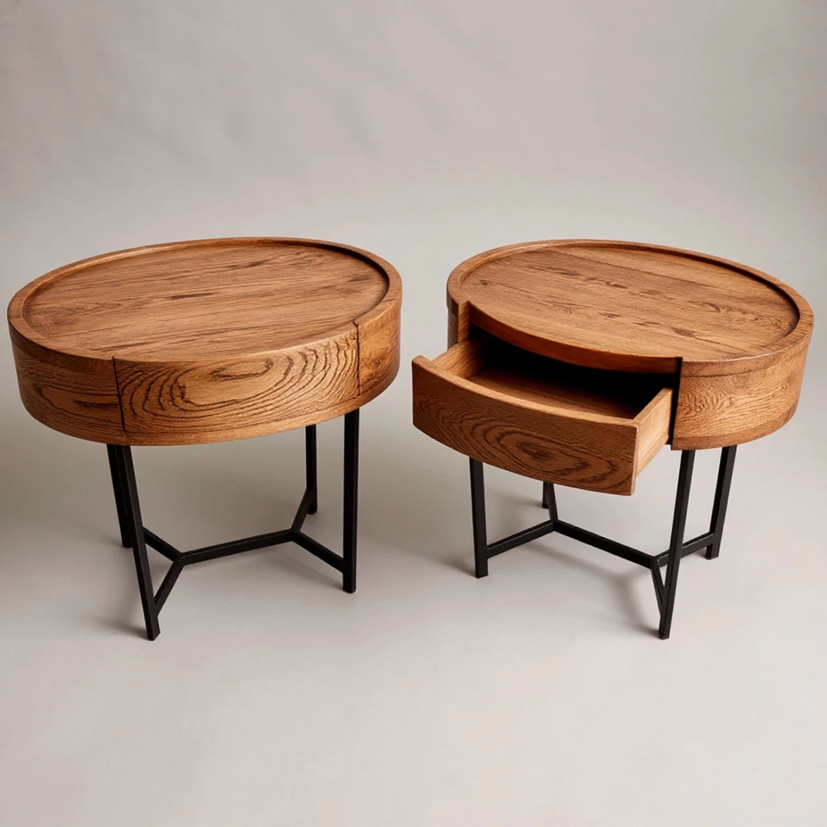 Представляем элегантный комплект из массива горного вяза, который можно использовать как круглые прикроватные тумбы в спальню или как оригинальные журнальные (кофейные) столики в гостиную. Эти изделия ручной работы, созданные с вниманием к деталям, станут стильной и функциональной изюминкой вашего интерьера.