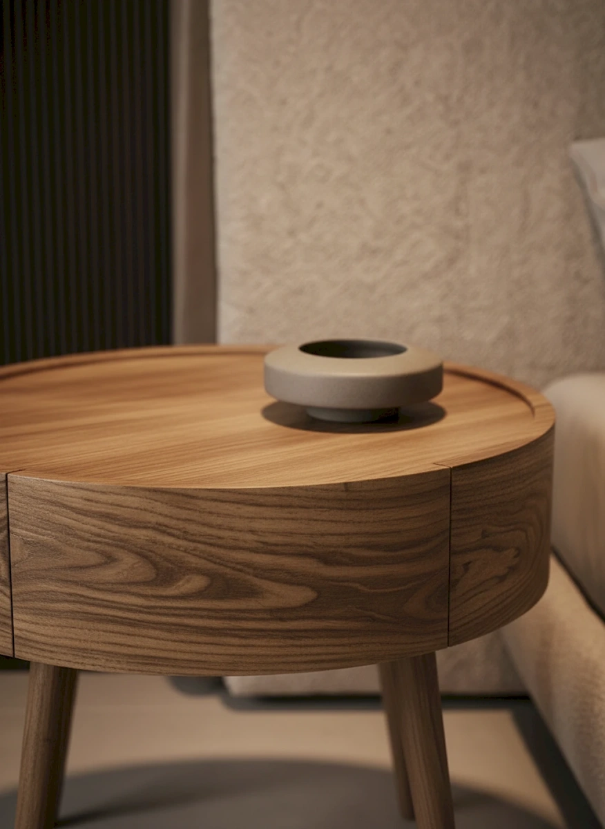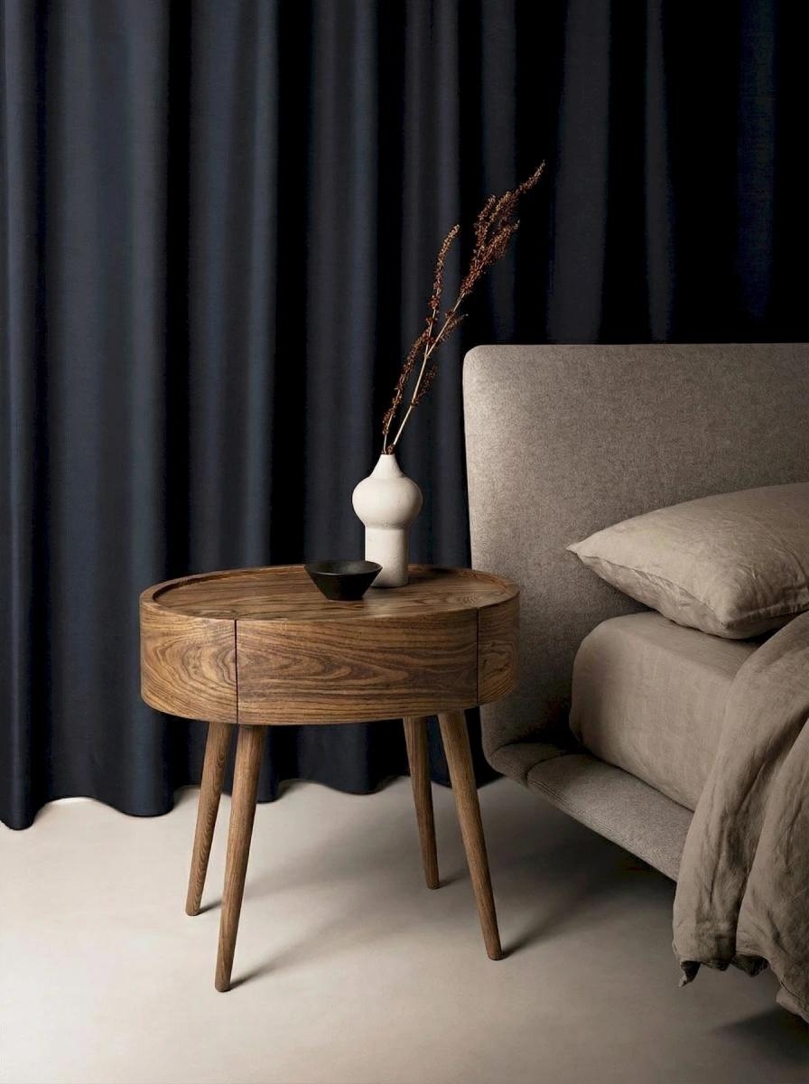 Тумба "Ellipse" наиболее органично смотрится в стилях скандинавский** и джапанди, с тенденцией к последнему за счёт глубокой гармонии минимализма и природной теплоты. При этом её дизайн уверенно воплощает ключевые принципы мид-сенчури, добавляя интерьеру ретро-элегантности. Эта дизайнерская тумба — универсальное решение, которое наполнит вашу спальню стилем, уютом и функциональностью.