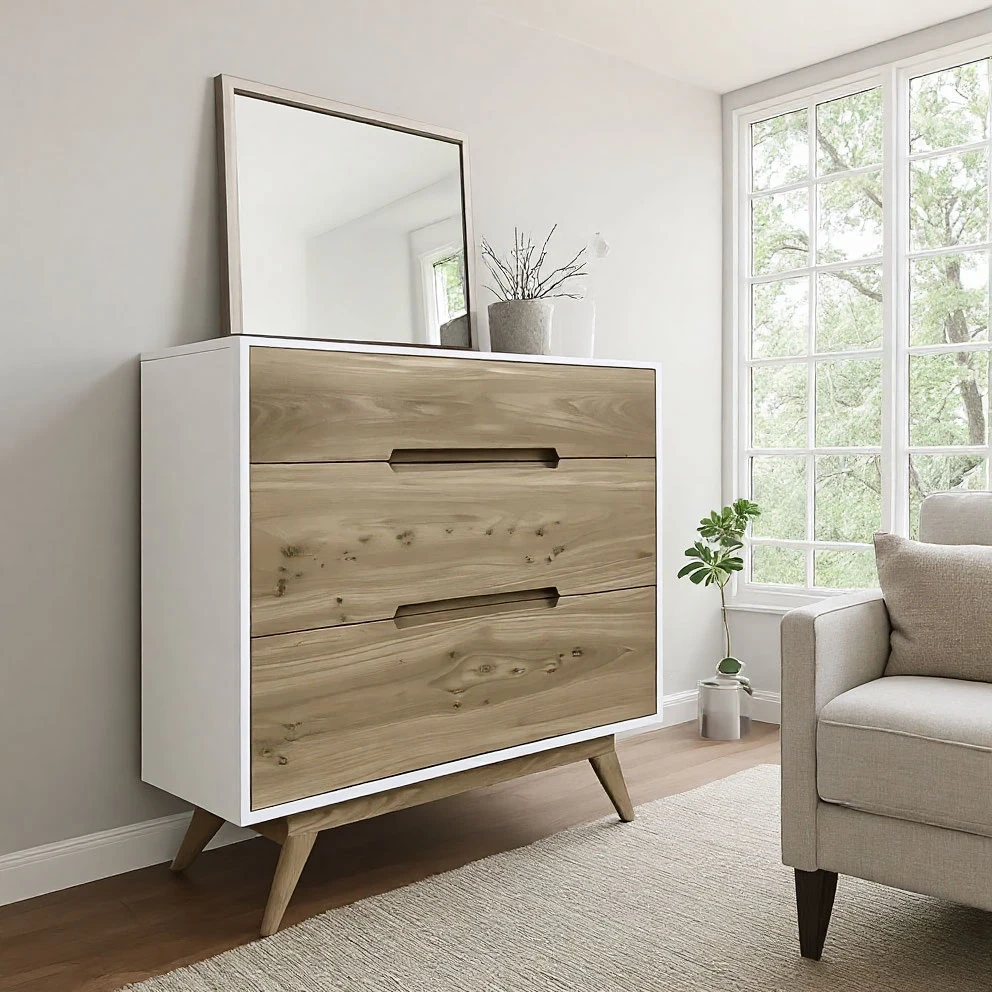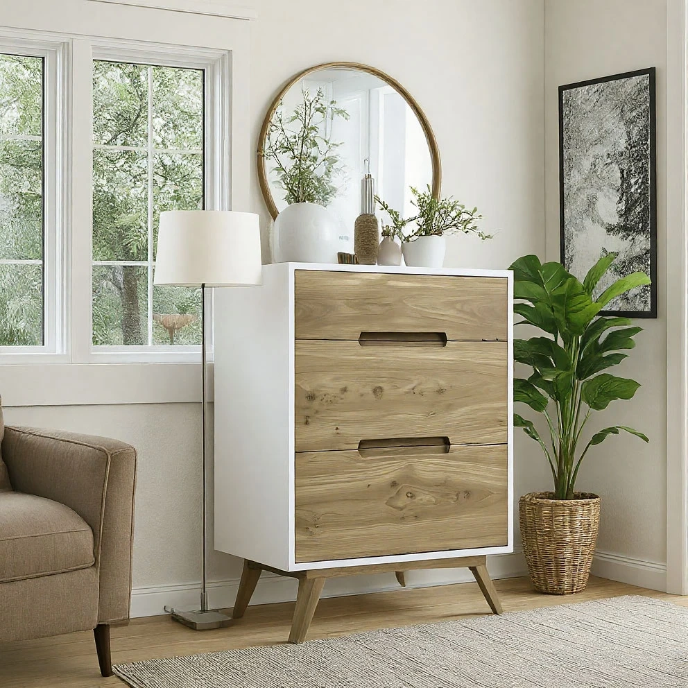 Дизайн этого комода из карагача можно отнести к нескольким актуальным стилям, включая джапанди (Japandi). Рассмотрим подробнее, какие черты делают его универсальным.
