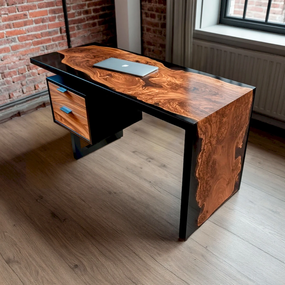 Письменный стол из слэба карагача с чёрной эпоксидной смолой — синтез природы и технологии
