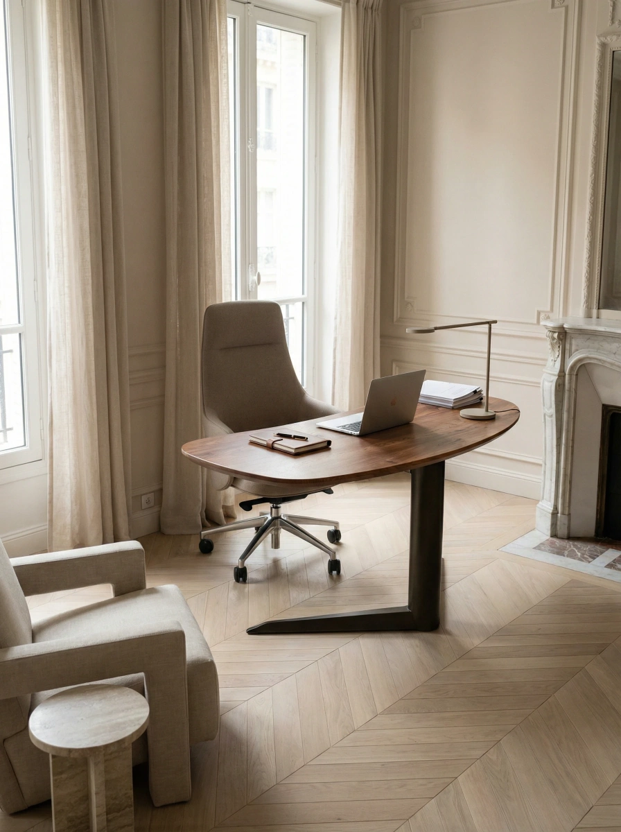 Вывод: этот письменный стол — универсальный элемент интерьера, который подойдёт как для домашнего кабинета, так и для офисного пространства. Его дизайн сочетает в себе элегантность, функциональность и современность, что позволяет адаптировать его под разные стилистические решения.