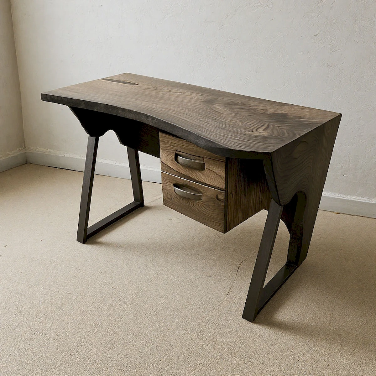 За основу этого стола взят цельный слэб массива карагача. Каждая деталь прошла многоэтапную обработку: фрезеровку, тщательную ручную шлифовку и финишную полировку. Мы сохранили все природные неровности, сучки и живую текстуру древесины, подчеркивая ее естественную красоту.