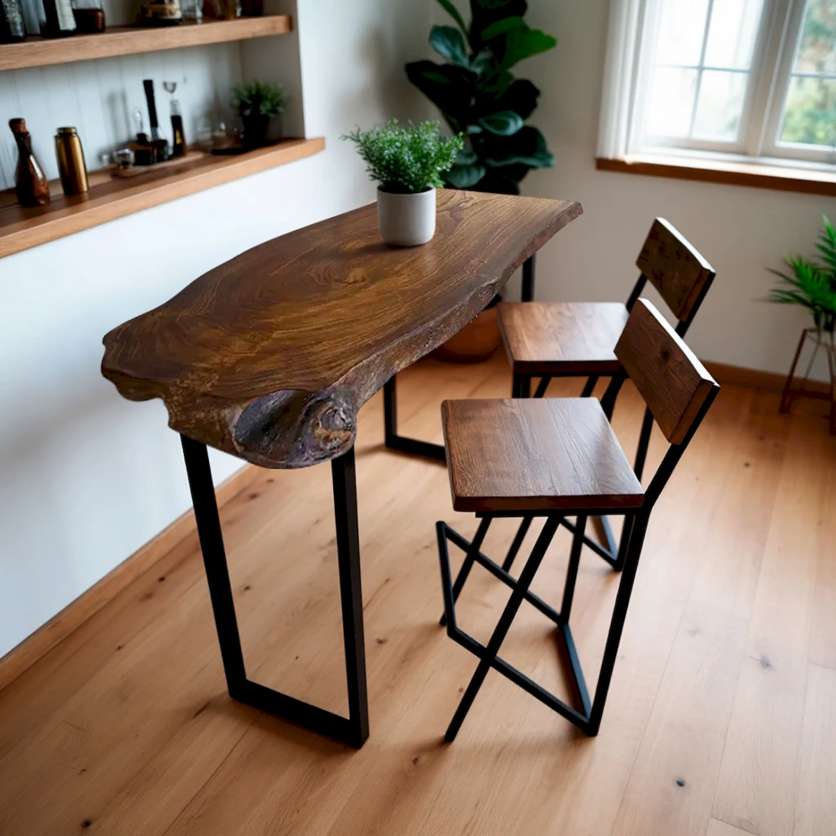 Сохраненная природная красота карагача и минимализм форм делают стол идеальным для эко- и сканди-интерьеров. Гармонично сочетается с растениями, светлыми стенами и натуральным текстилем.