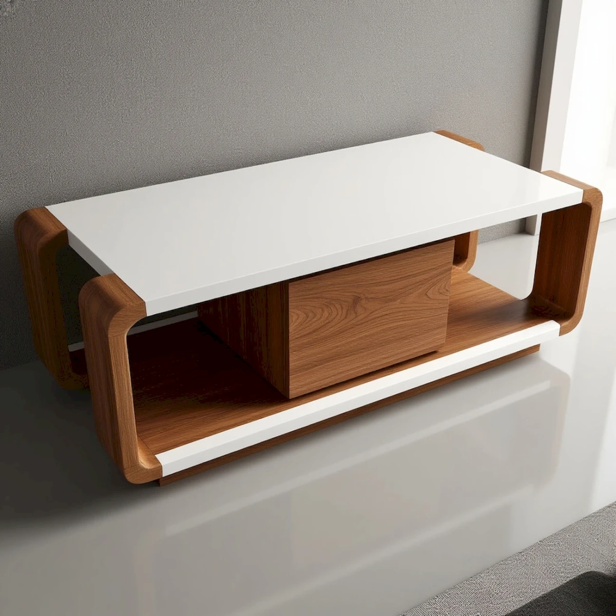 - Выдвижной ящик: Удобное хранение для пультов, кабелей, мелких предметов. Оснащён плавными направляющими и надёжной фурнитурой марки "Blum".