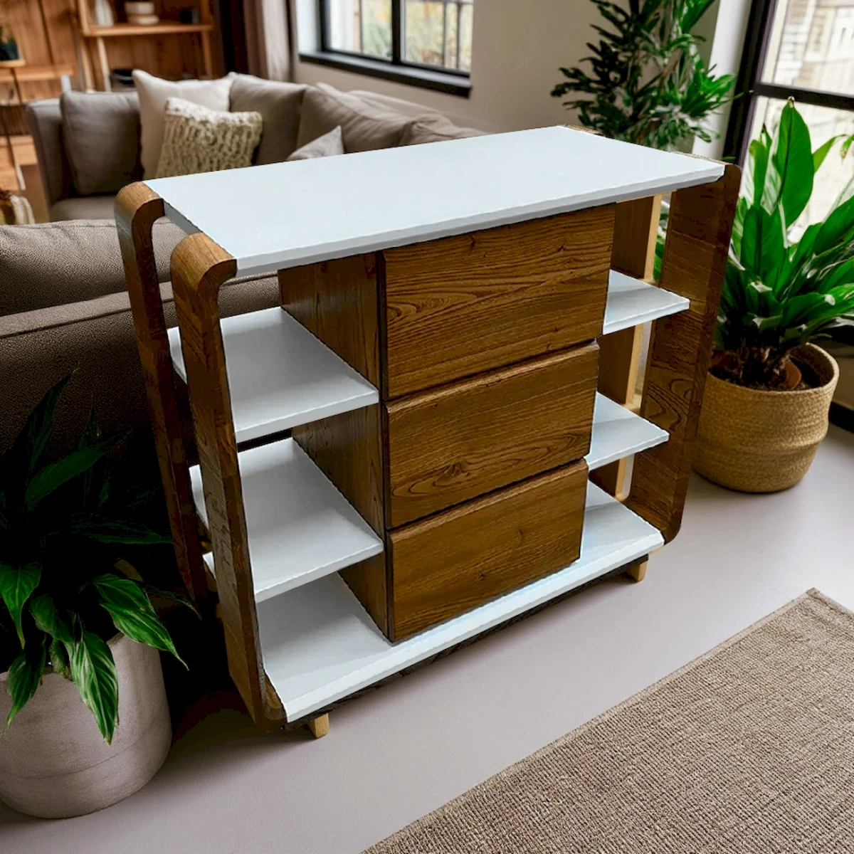 Оригинальный комод из массива карагача и белого МДФ на заказ
