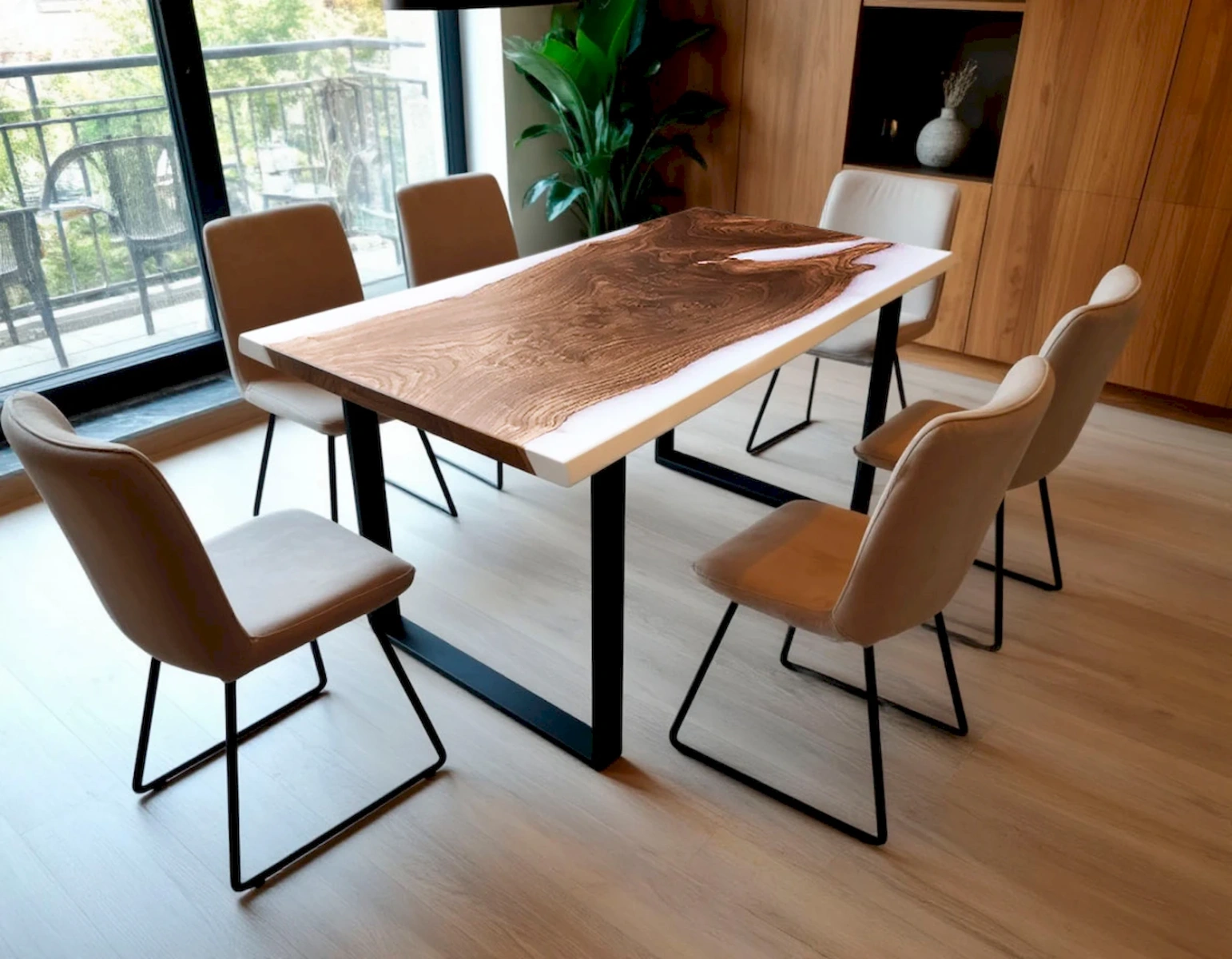 Эксклюзивный обеденный стол из массива вяза с эпоксидной смолой «Молоко»