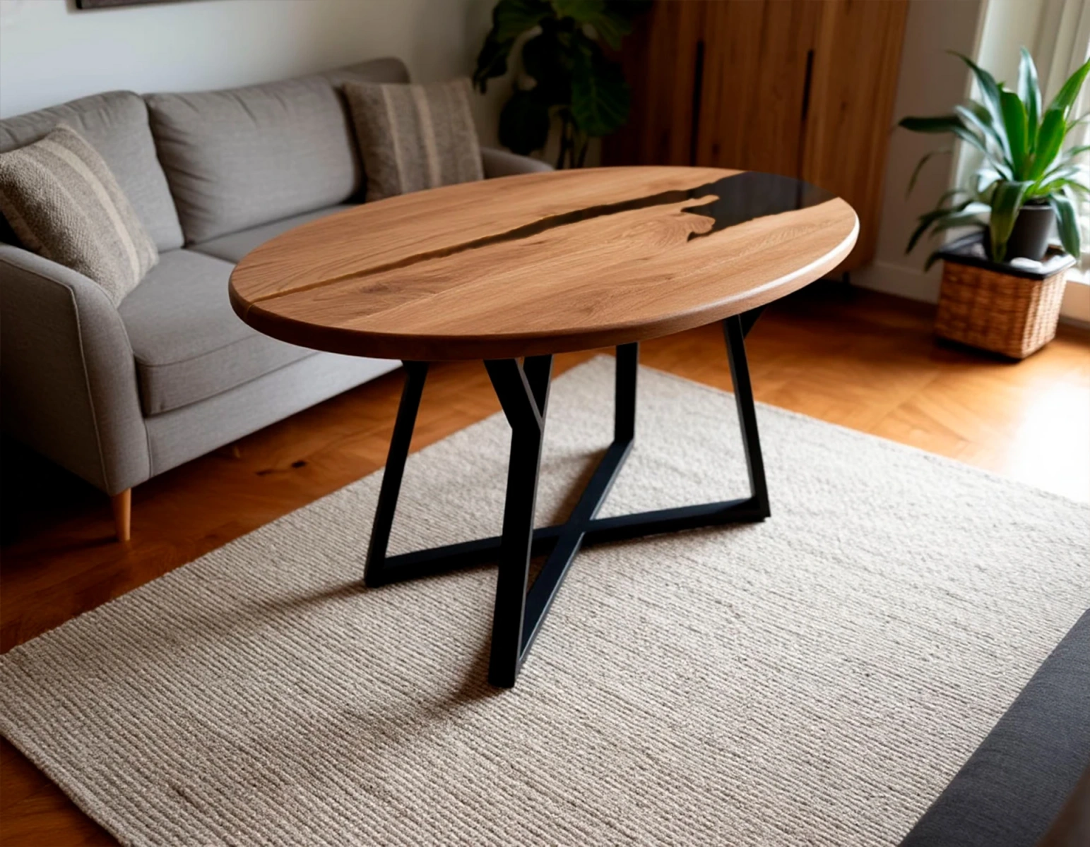 Дизайн: Вставка из полупрозрачной эпоксидной смолы светло-черного цвета. Создает эффект глубокой «реки» или природной «трещины», добавляя современный художественный акцент.