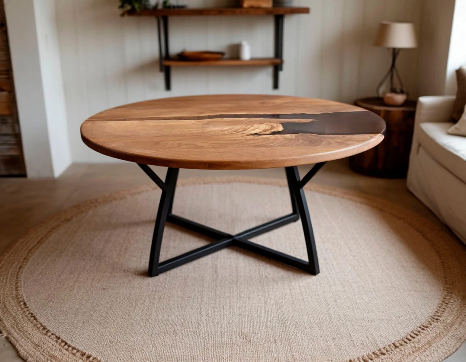 - Лофт и Индастриал: Грубая текстура дерева, металлические ножки и индустриальная эстетика эпоксидной «реки» созданы для таких пространств.