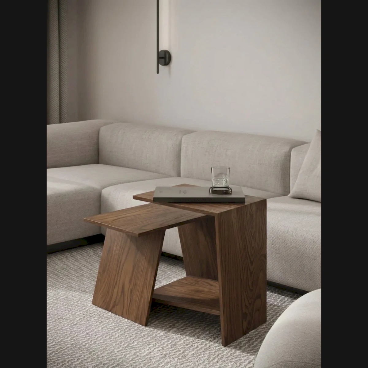 Комплект придиванных столиков из массива американского ореха — это оригинальное дизайнерское решение в виде двух журнальных столиков. Каждый из них, как элемент конструктора, выполняет несколько функций в зависимости от постановки на определенную грань: классический журнальный столик, компактный обеденный, приставной рабочий для ноутбука или детский столик для творчества. Вместе они создают яркий функциональный акцент, притягивающий внимание в любом жилом пространстве.