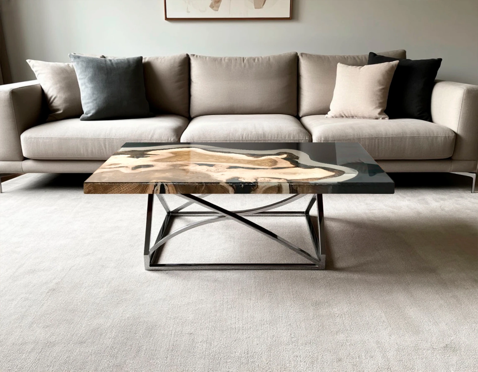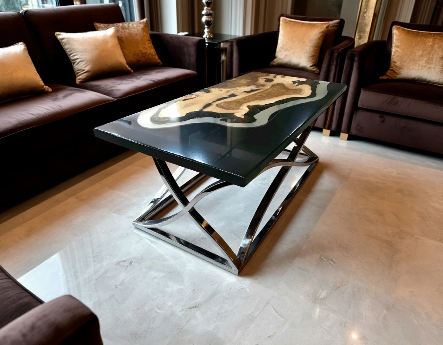 Мы изготовим такой журнальный стол по вашему индивидуальному заказу — подберём размеры, оттенок смолы и форму основания. Превратим вашу мечту в реальность!