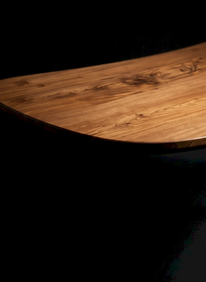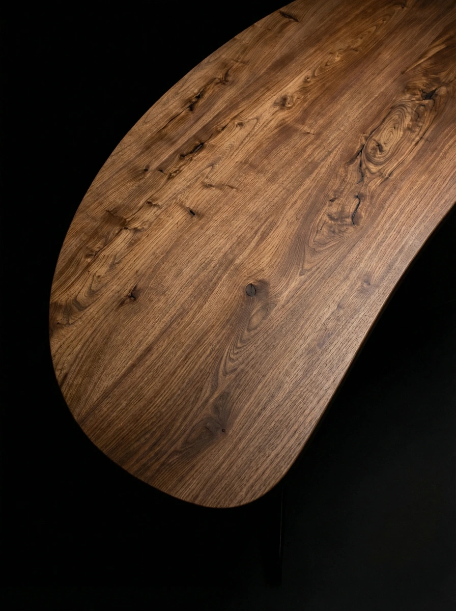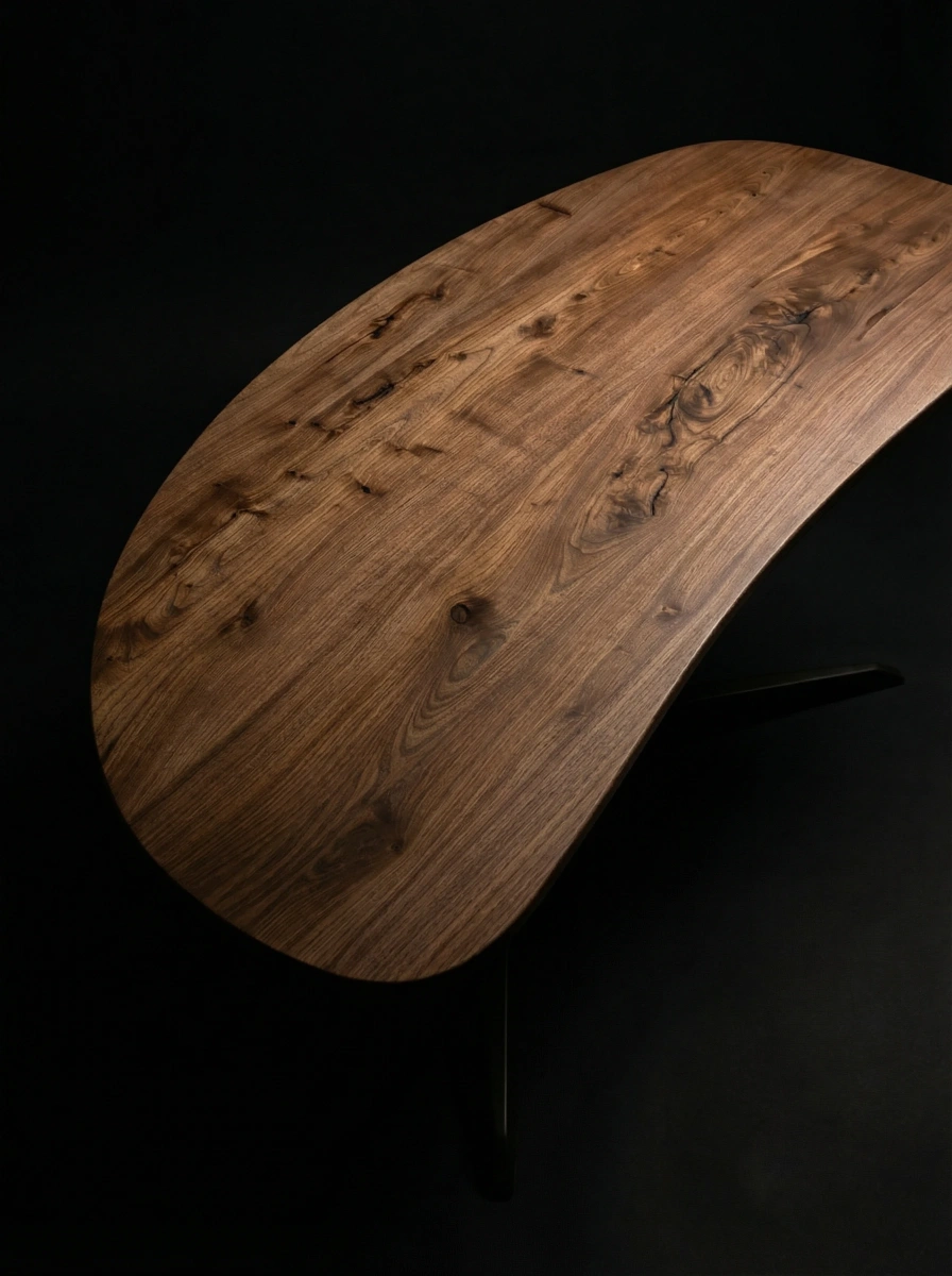 Бизнес-стиль (Executive): Солидность массива карагача и строгость формы делают стол «Bean» отличным выбором для кабинета руководителя, подчеркивая статус и серьезность.