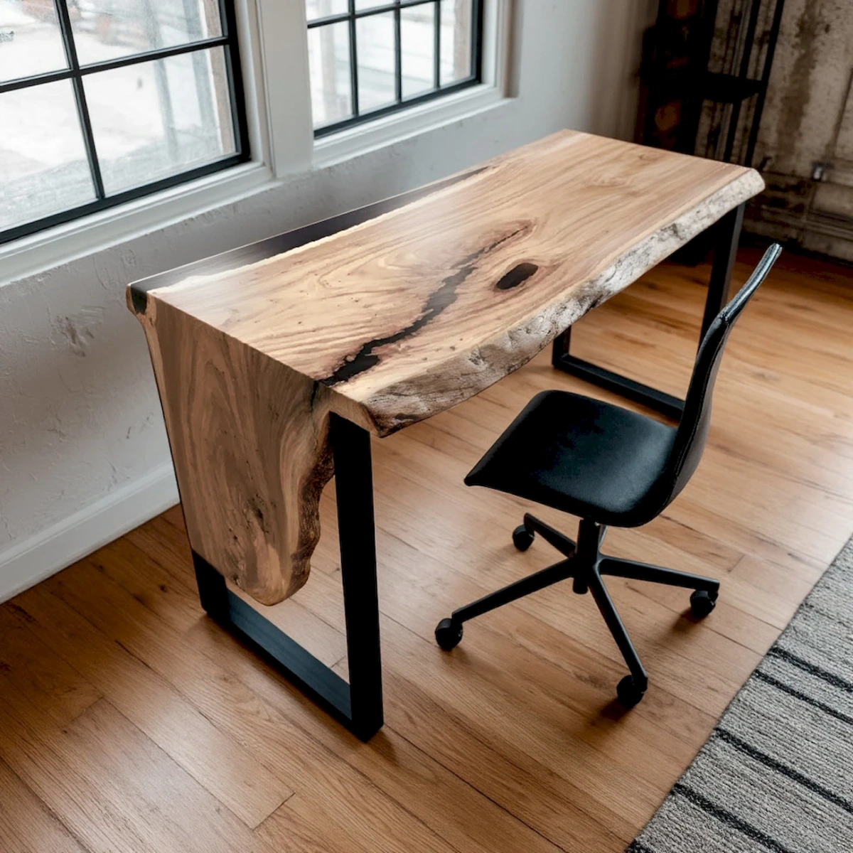 Письменный стол выполнен из массива горного вяза. Темные заливки эпоксидной смолой на фоне светлой древесины придают изделию неповторимую оригинальность, от которой вы получите настоящее наслаждение. Возможно изготовление по индивидуальным размерам. Тонировка древесины, как и цвет смолы, могут быть различными.