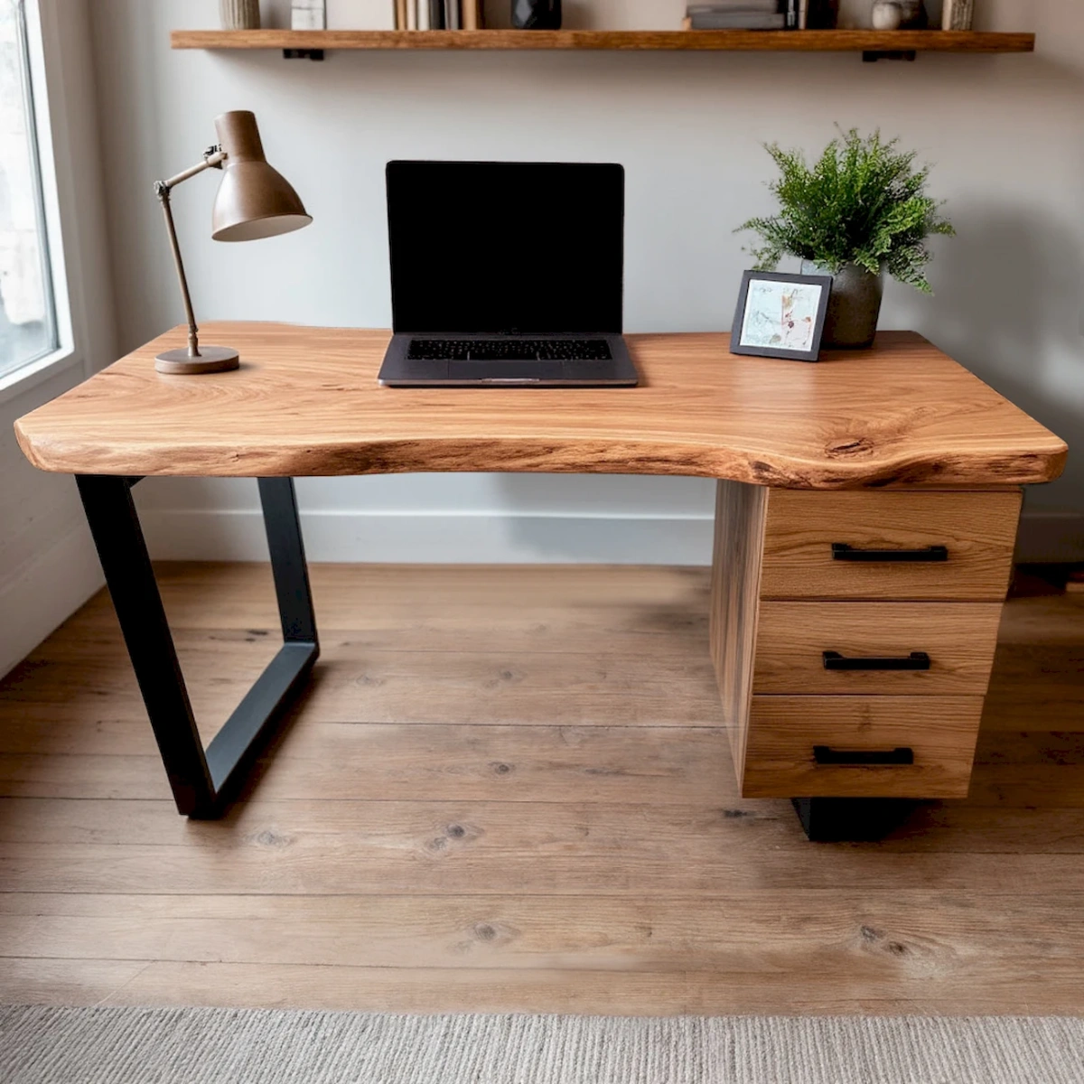 Столешница из цельного слэба карагача поражает своим разнообразием рисунка дерева. На поверхности имеются натуральные трещины, залитые эпоксидной смолой, что придает эффектность и привлекательность изделию. Выдвижные ящики оборудованы фурнитурой полного выдвижения марки Blum. Финишное покрытие сделано водным лаком для защиты поверхности, что при эксплуатации скажется в лучшую сторону. Возможно полностью индивидуальное изготовление по всем вашим пожеланиям.