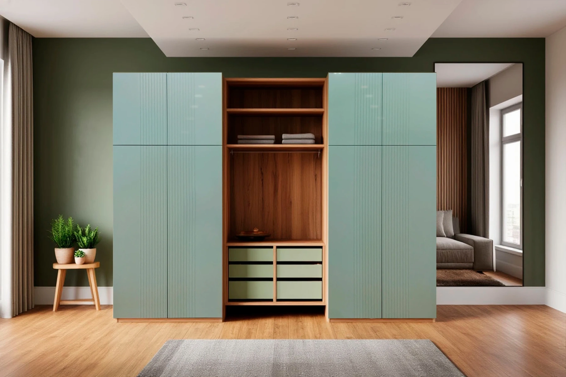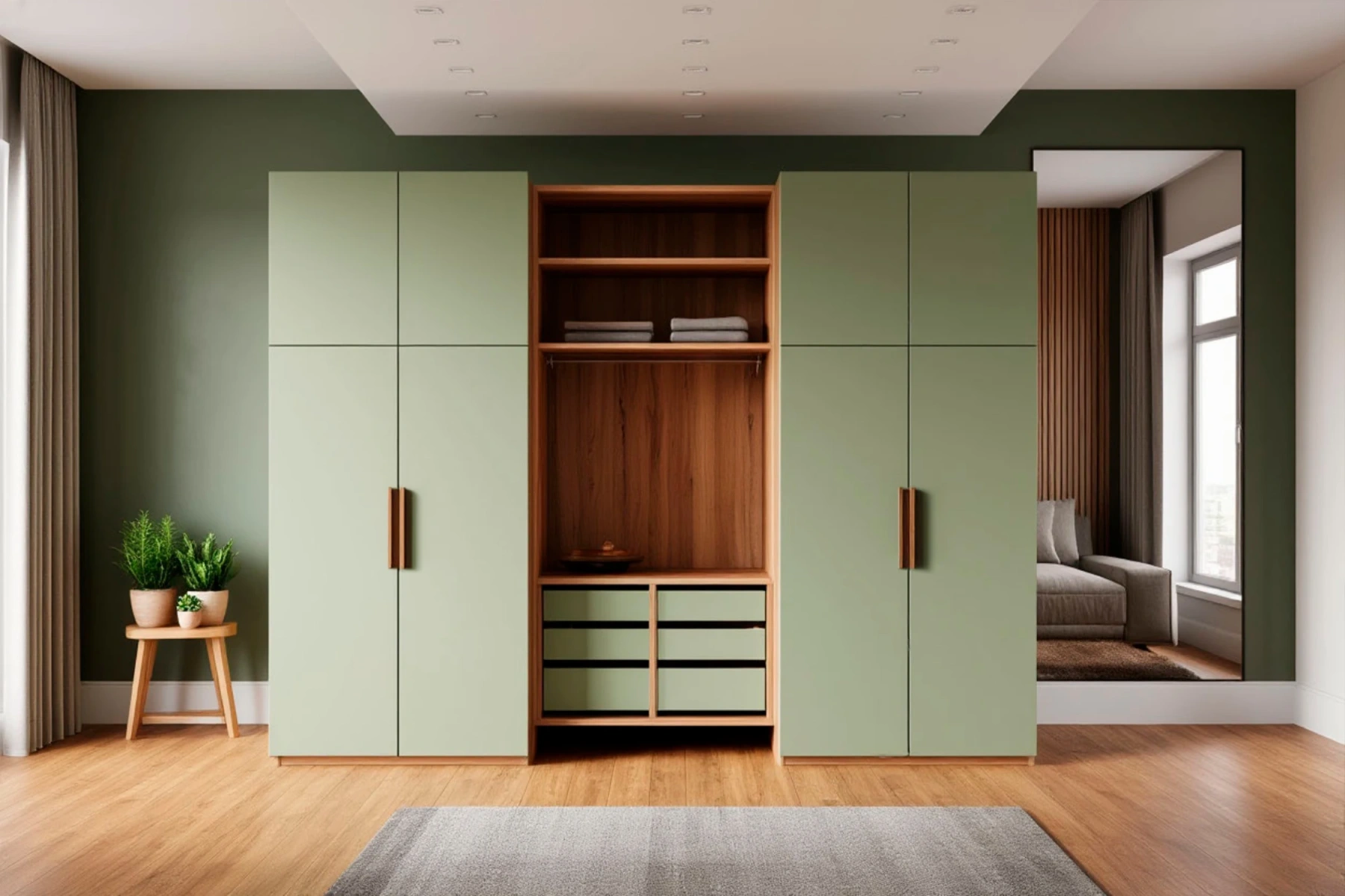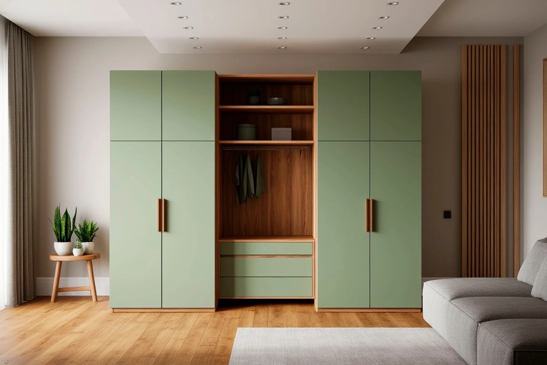 - Ничего лишнего: Только функциональные элементы — двери, полки, ящики.