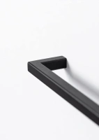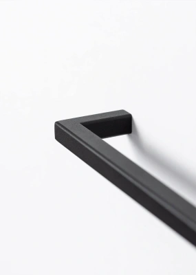 Выдвижные ящики открываются с помощью механизма push-to-open и имеют наполнение из МДФ под эмалью с вырезом под сифон для удобства использования. Эстетически привлекательные фасады тумбы окантованы контрастной рамой из МДФ, а черные элементы идеально гармонируют с аксессуарами ванной комнаты.