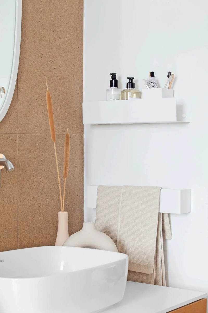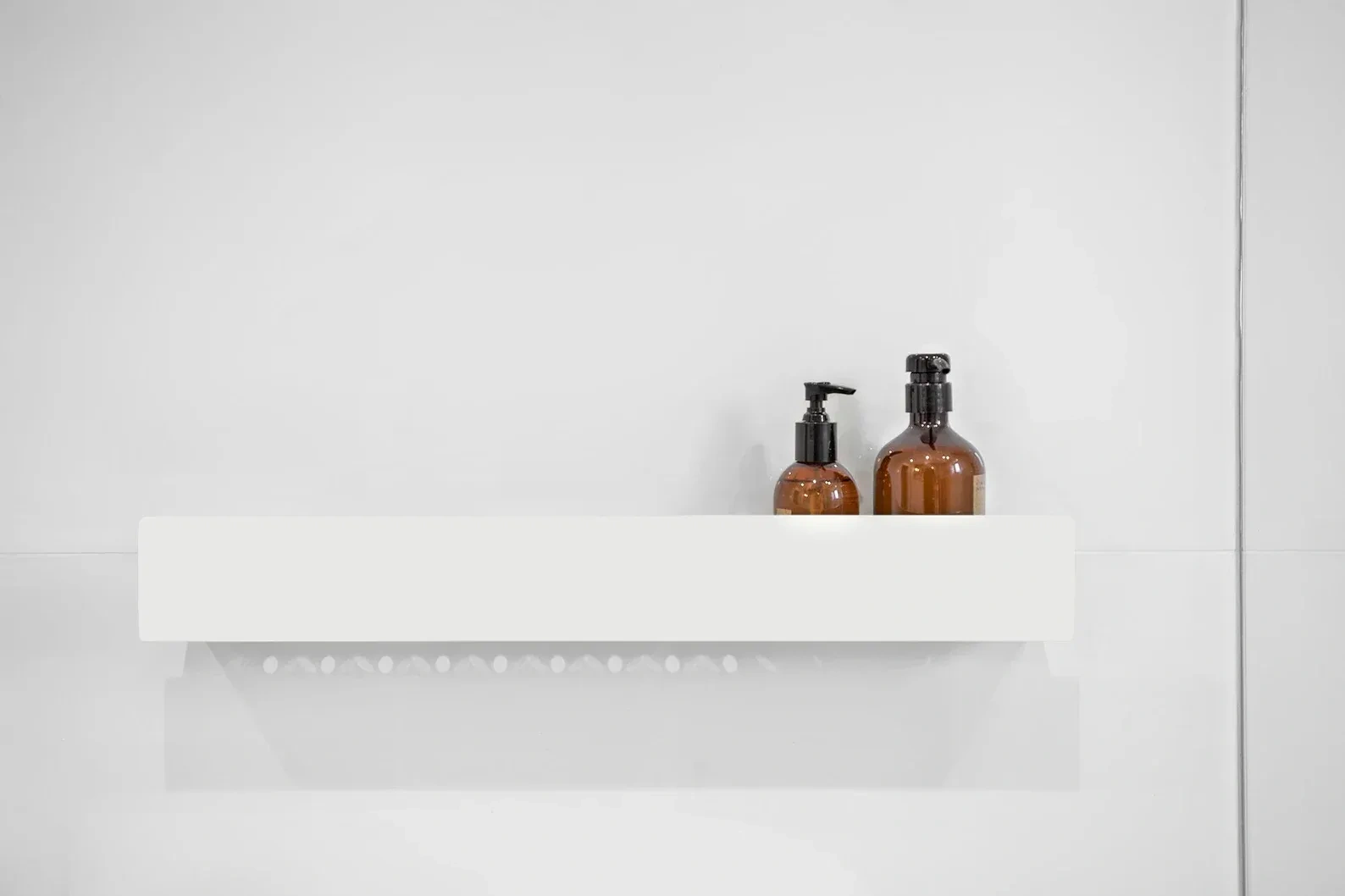 Специально разработанная для помещений с повышенной влажностью, полка MyOry Baseinv с системой дренажных отверстий обеспечивает эффективный сток воды и быструю сушку. Идеальный выбор для размещения непосредственно в душевой кабине или рядом с ней.