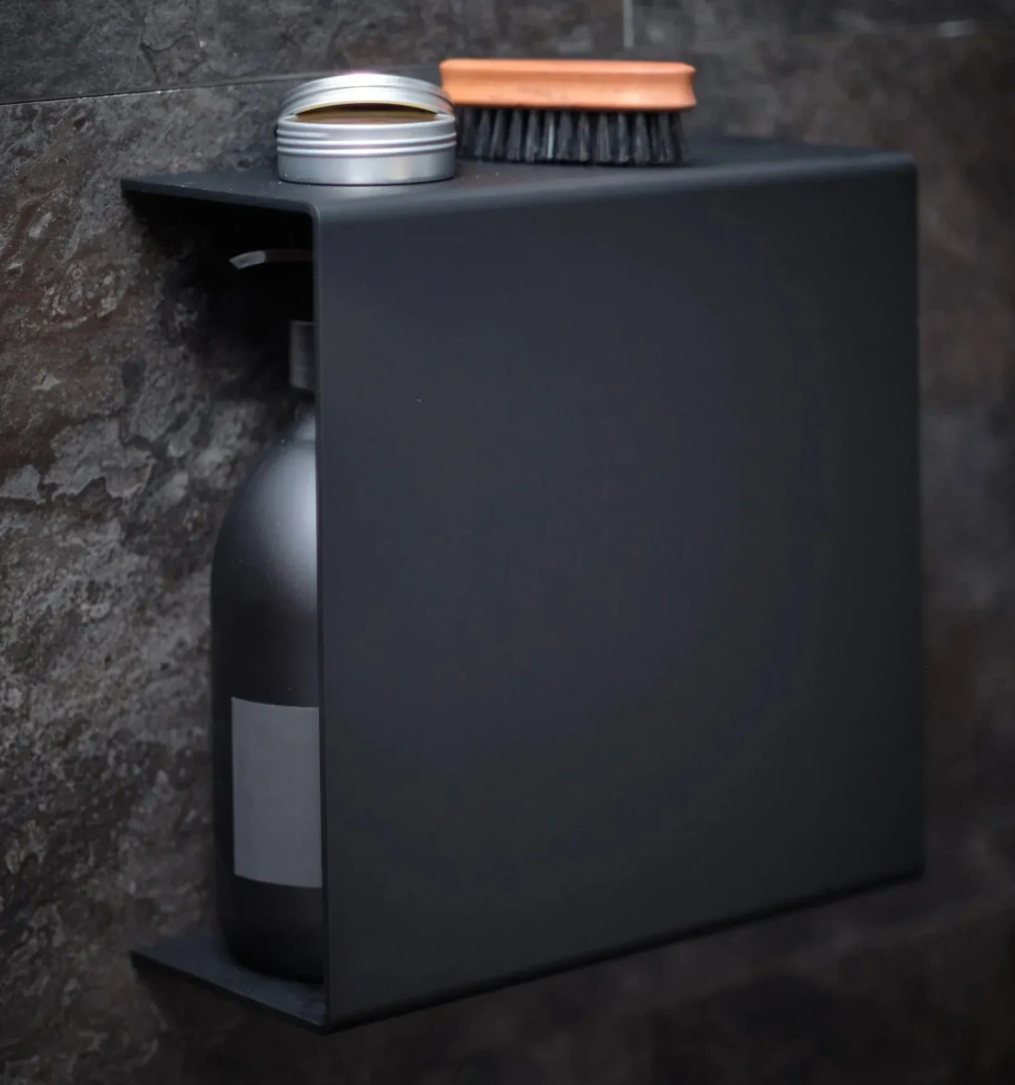 Уникальная П-образная конструкция полки MyOry Solly предлагает два полноценных яруса для хранения с интегрированной защитой. Защитная стенка надежно удерживает предметы на нижнем ярусе — идеальное решение для активных зон возле раковины или в душевой. обеспечивает безопасное хранение банных принадлежностей даже в условиях ограниченного пространства.
