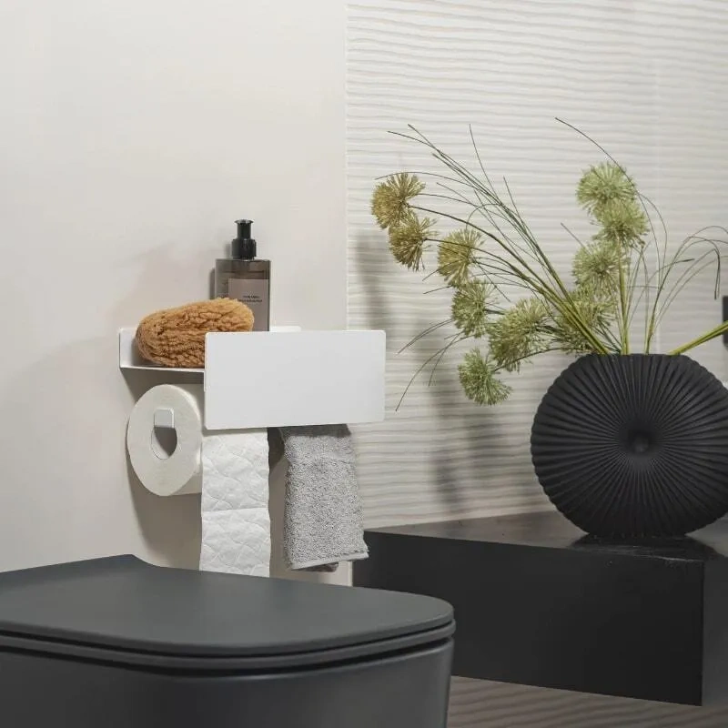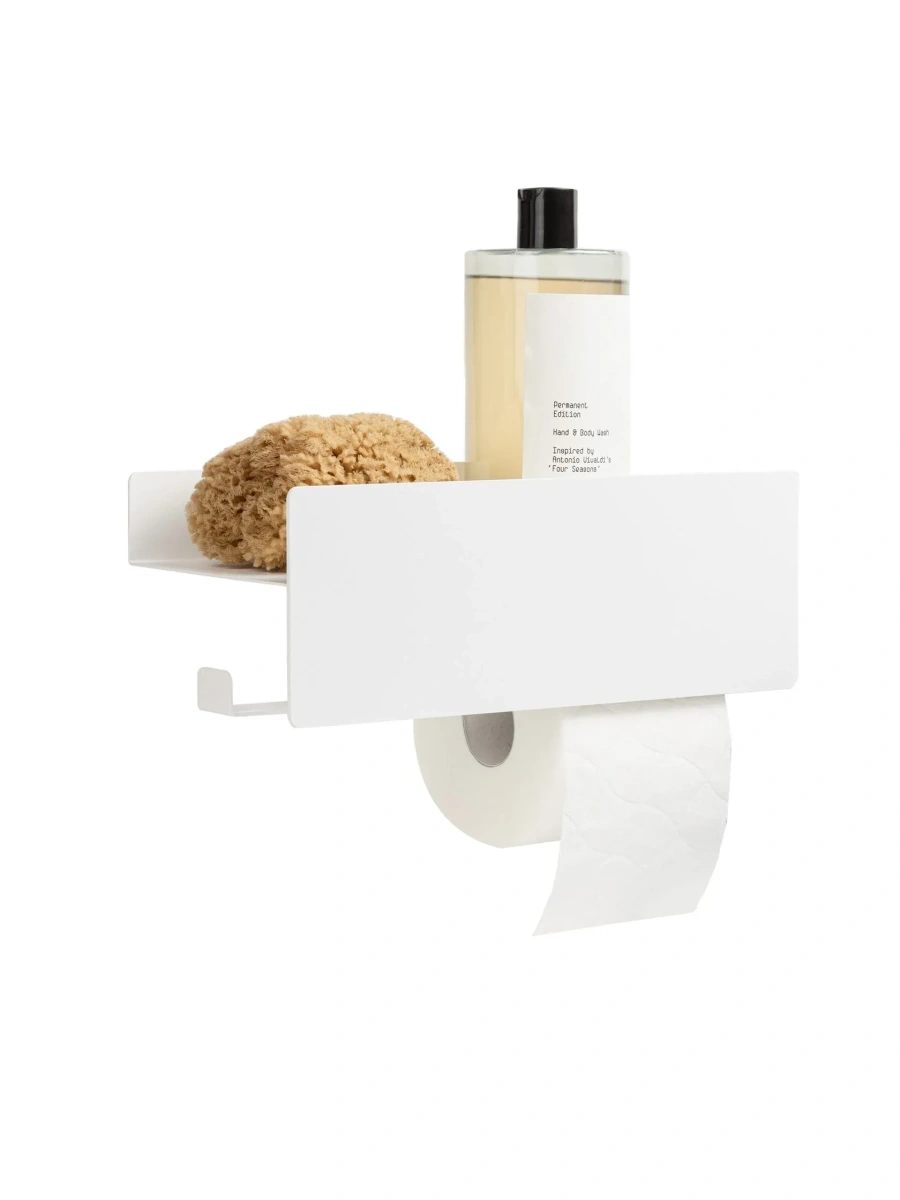 Компактный держатель для двух рулонов туалетной бумаги MyOry Plush Two. Оригинальное решение с полочкой и дополнительным креплением для двторого рулона туалетной бумаги, которое может быть использовано как вешалка для небольшого гигиенического полотенца. Отлично подойдет практически для любого стилевого решения туалета или ванной комнаты.