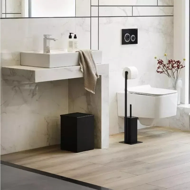 MyOry BrushQuad Two — это элегантная напольная конструкция, объединяющая держатель для туалетной бумаги и ёршика в едином стилевом решении. Модель разработана специально для оптимизации пространства санузлов различной площади — от компактных туалетных комнат в типовых квартирах до просторных дизайнерских помещений.
