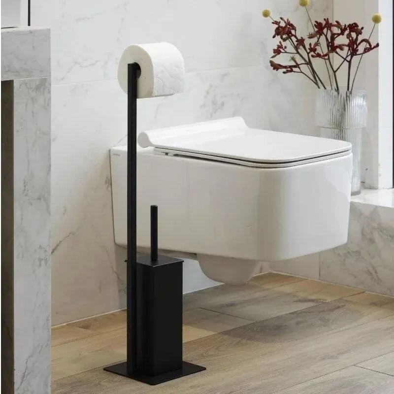 Металлический напольный держатель для туалетной бумаги и ёршика MyOry BrushQuad Two — универсальное решение