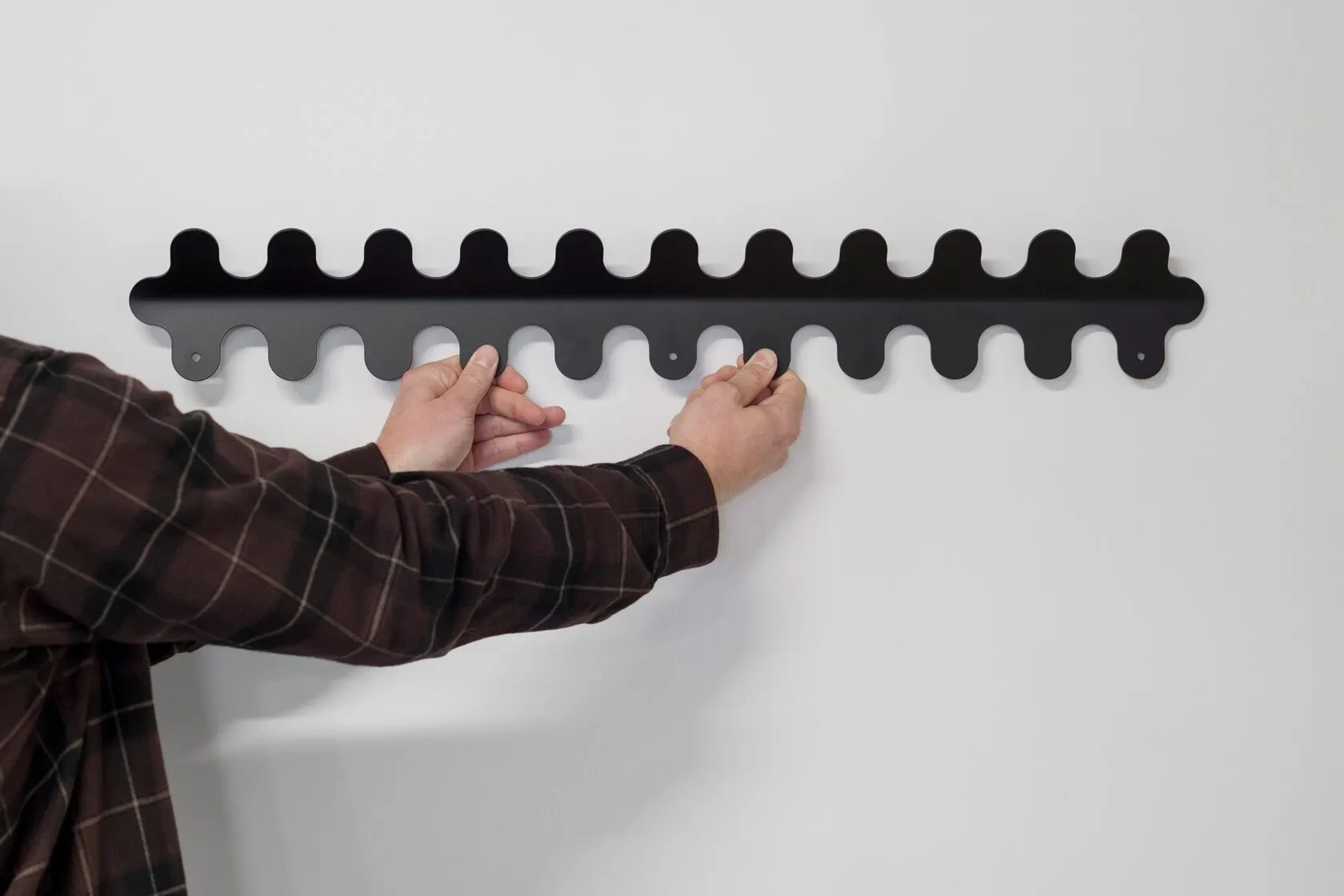 Выразительный дизайн: 11 аккуратных крючков, объединенных в единую строгую форму длиной 43 см, создают современный и графичный элемент декора.