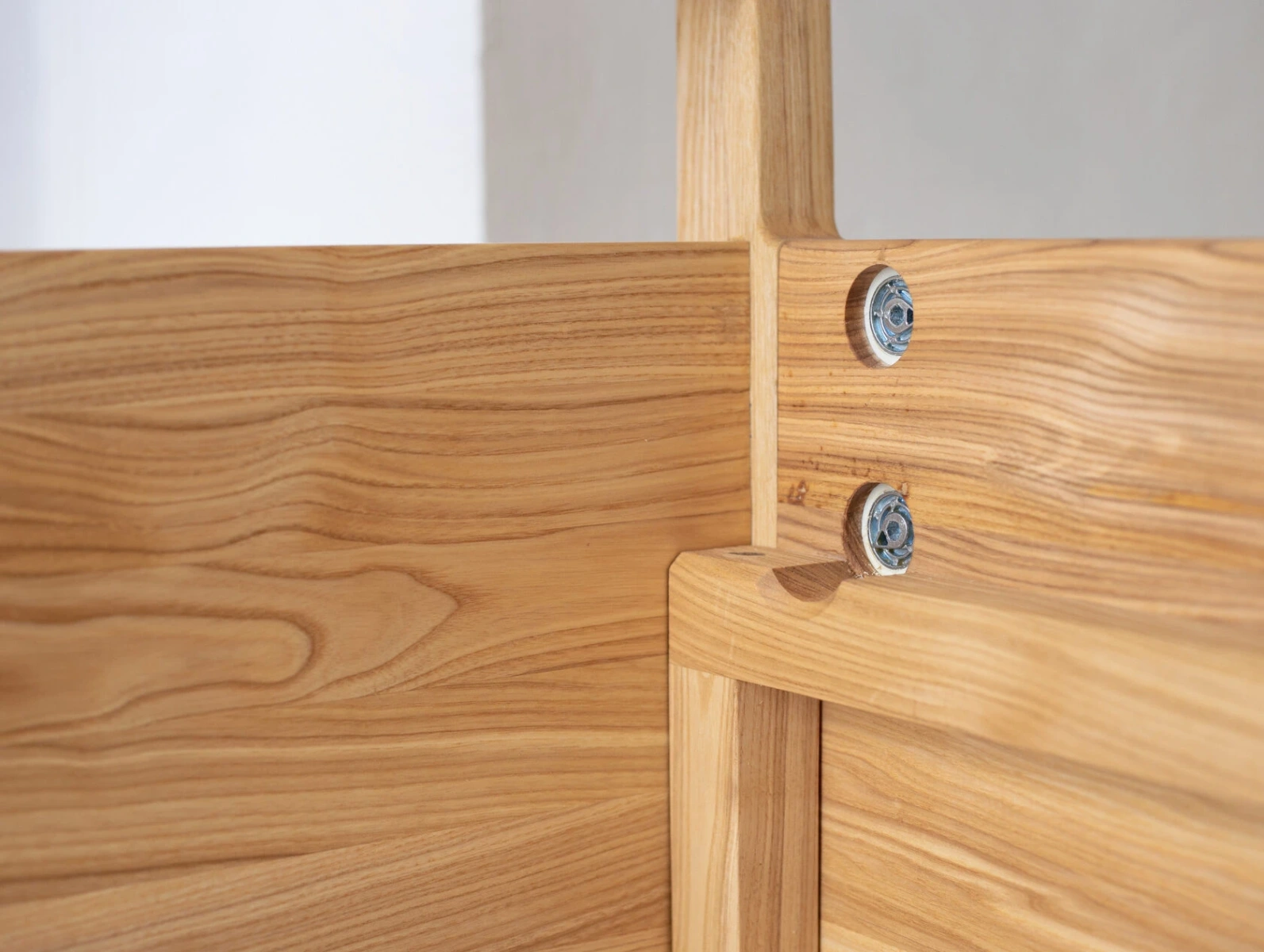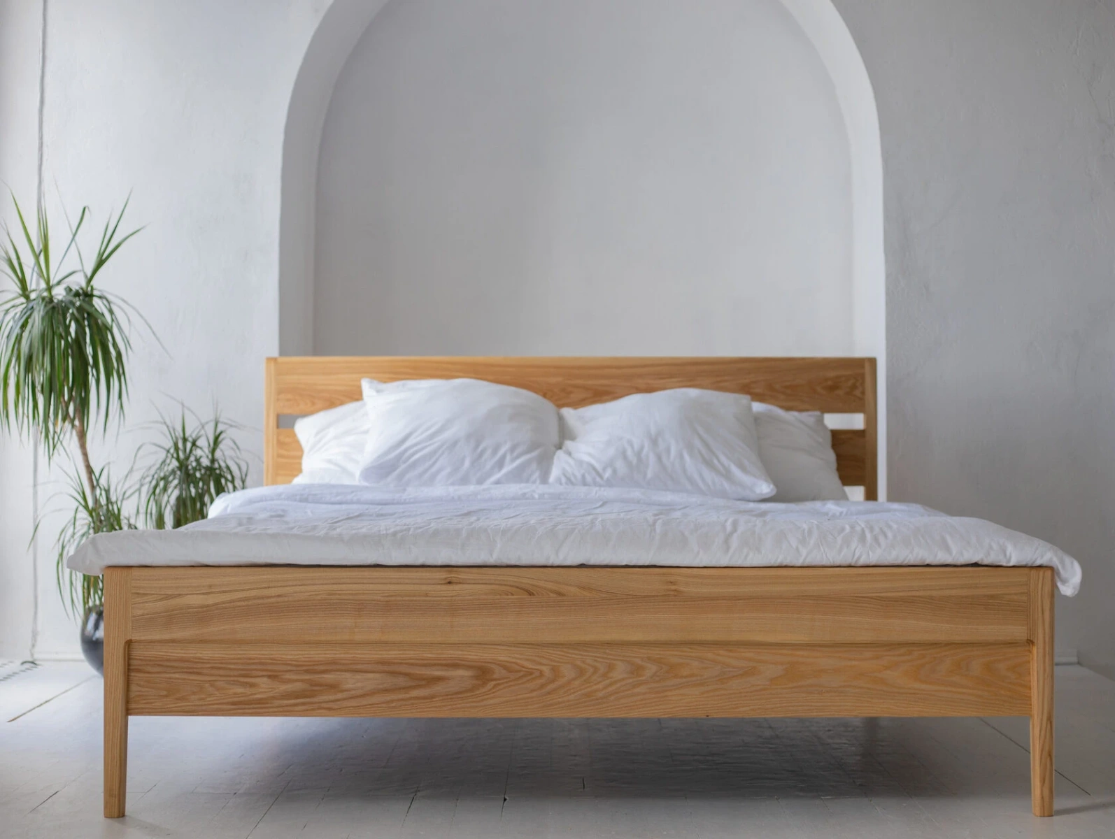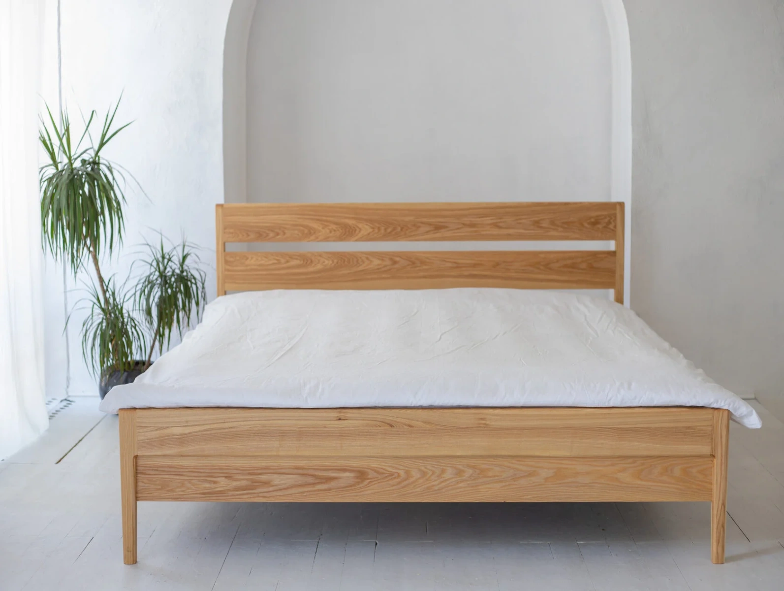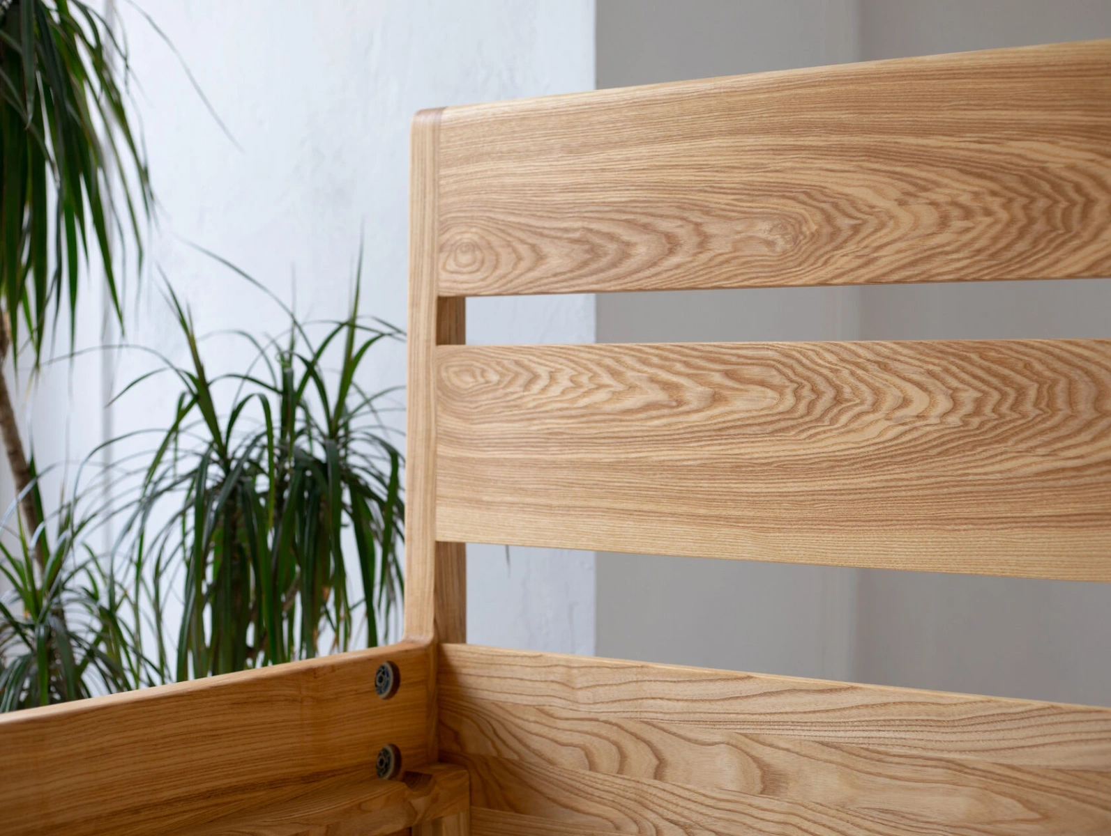 Элегантная двуспальная кровать из натурального массива дерева, оснащенная удобной системой хранения — выдвижными ящиками для белья. Это идеальное сочетание лаконичной эстетики, экологичности и практичной функциональности для современной спальни.