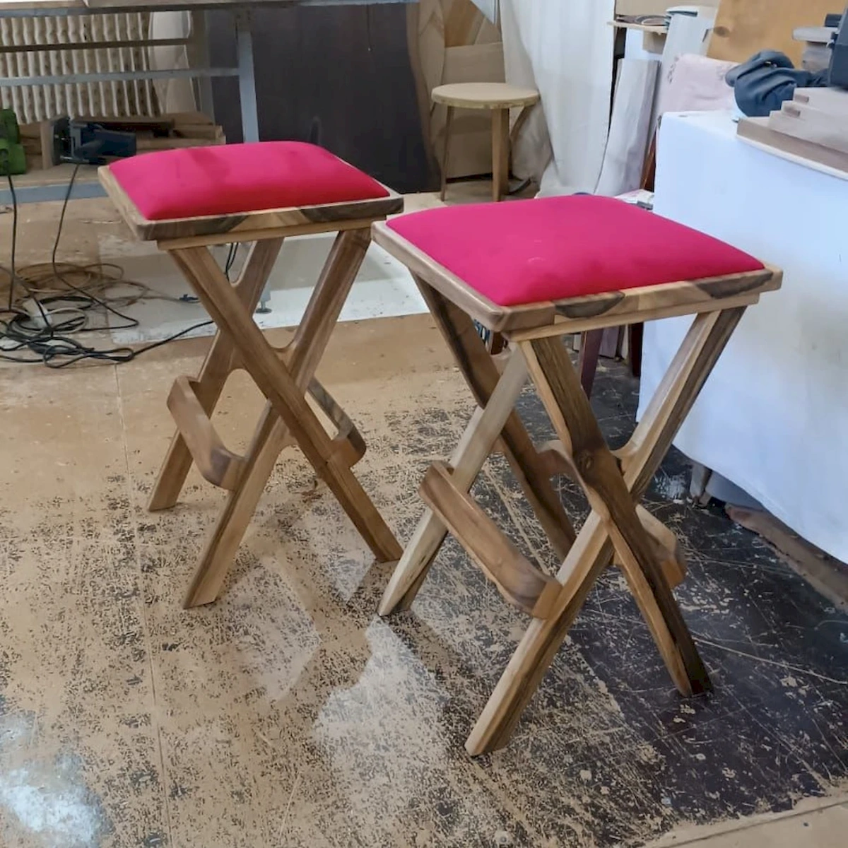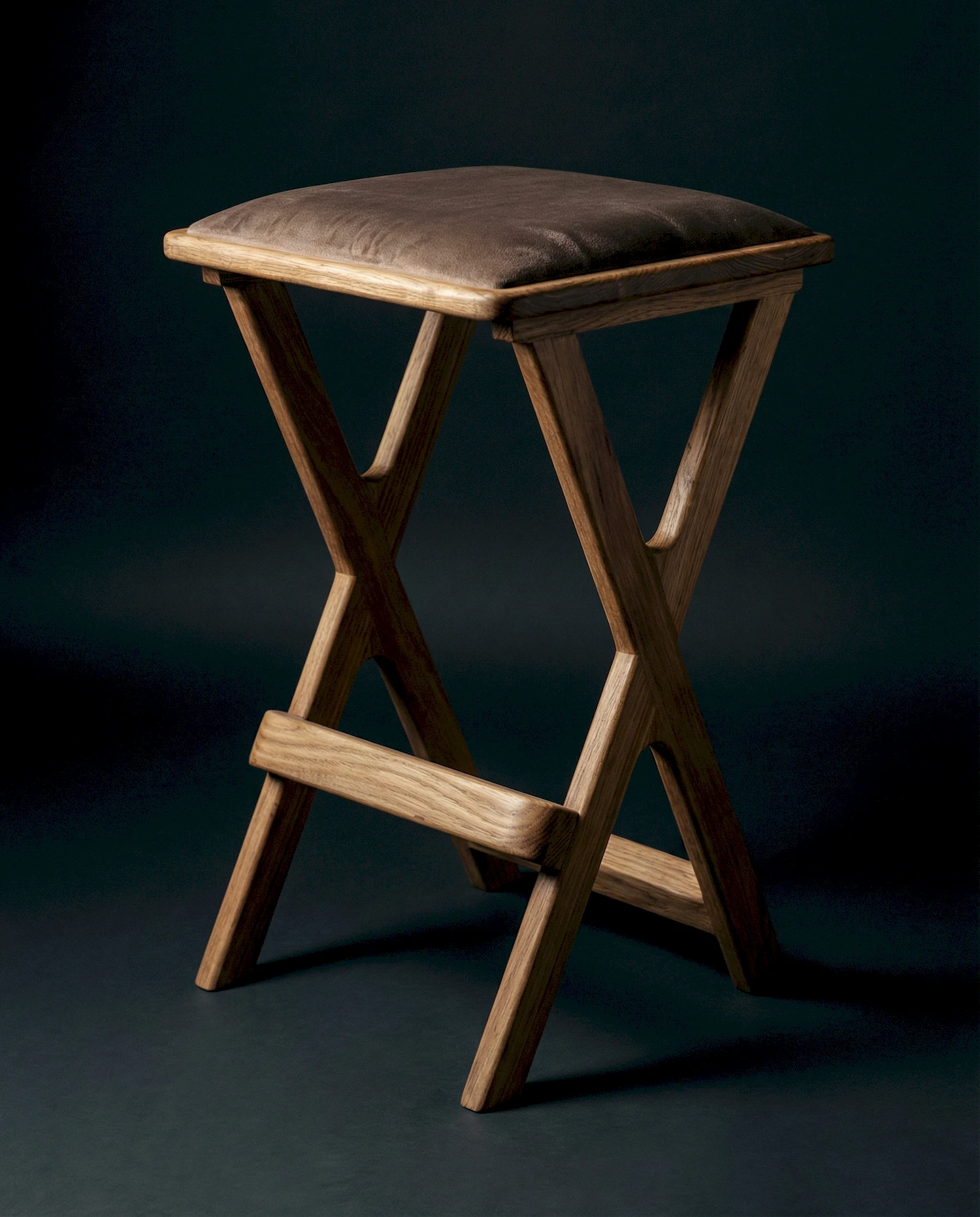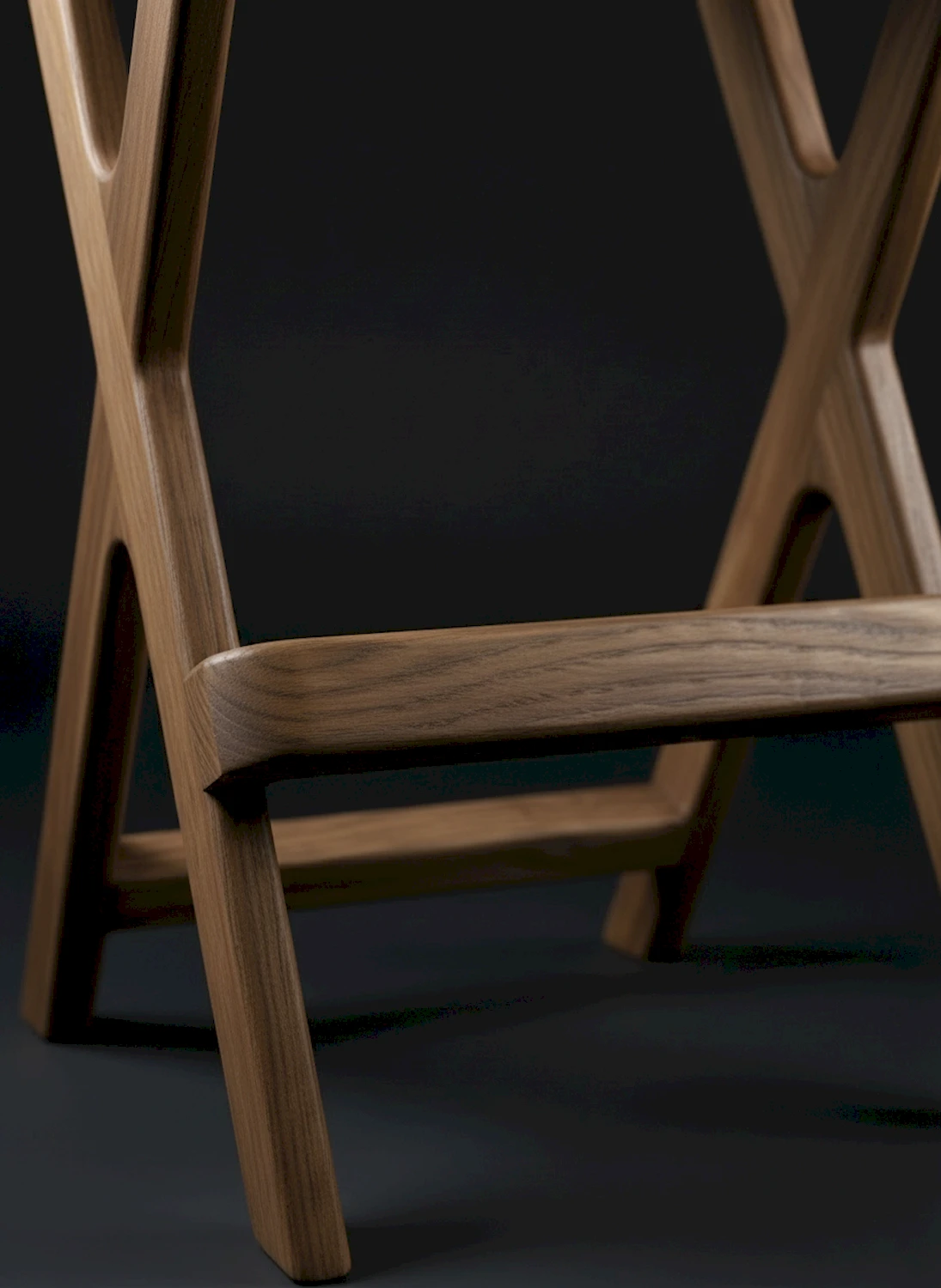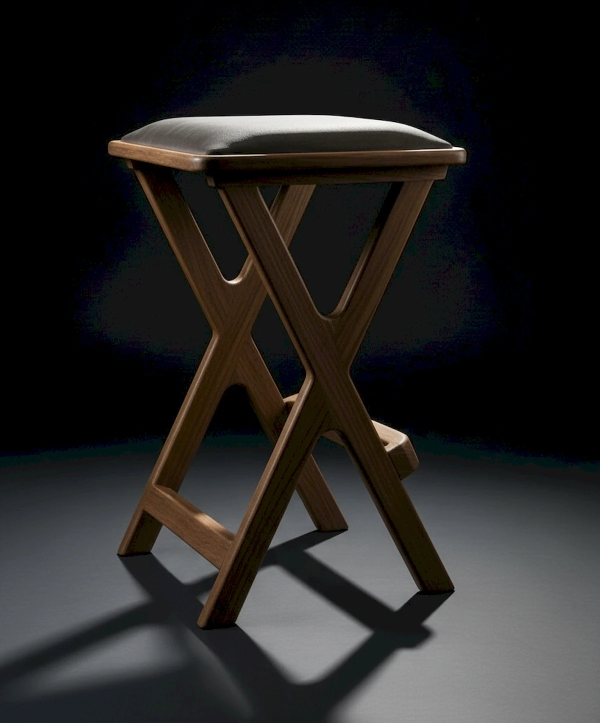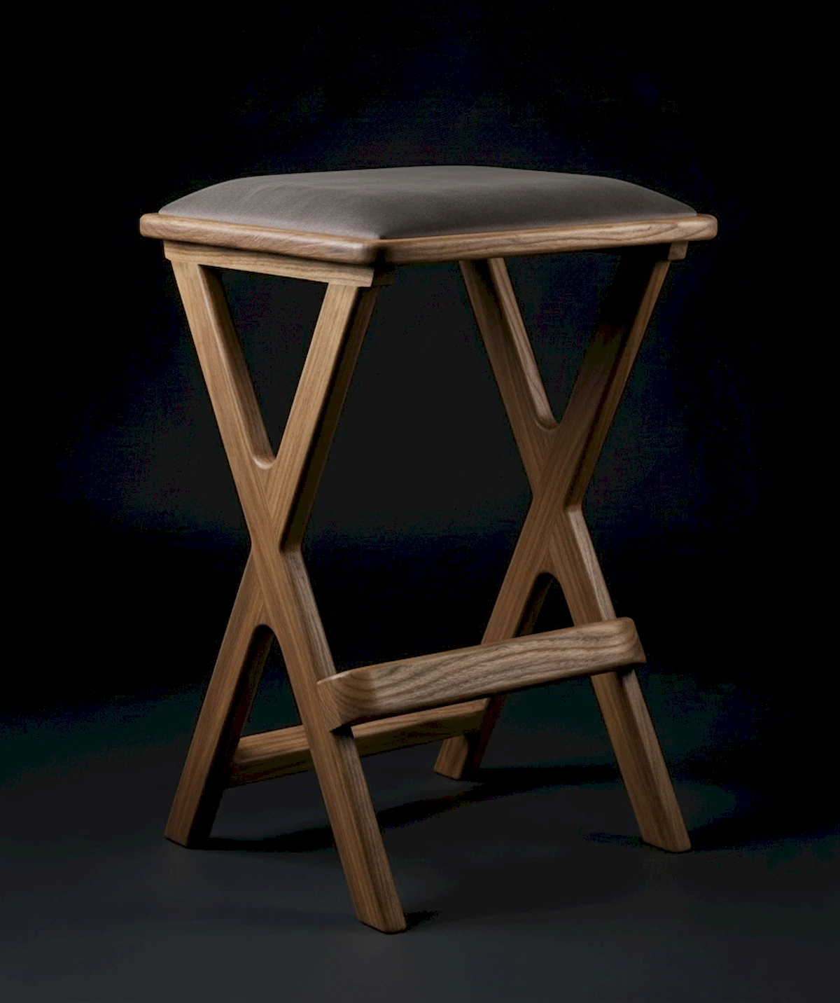 Дизайнерский барный табурет из массива дерева с Х-образными ножками