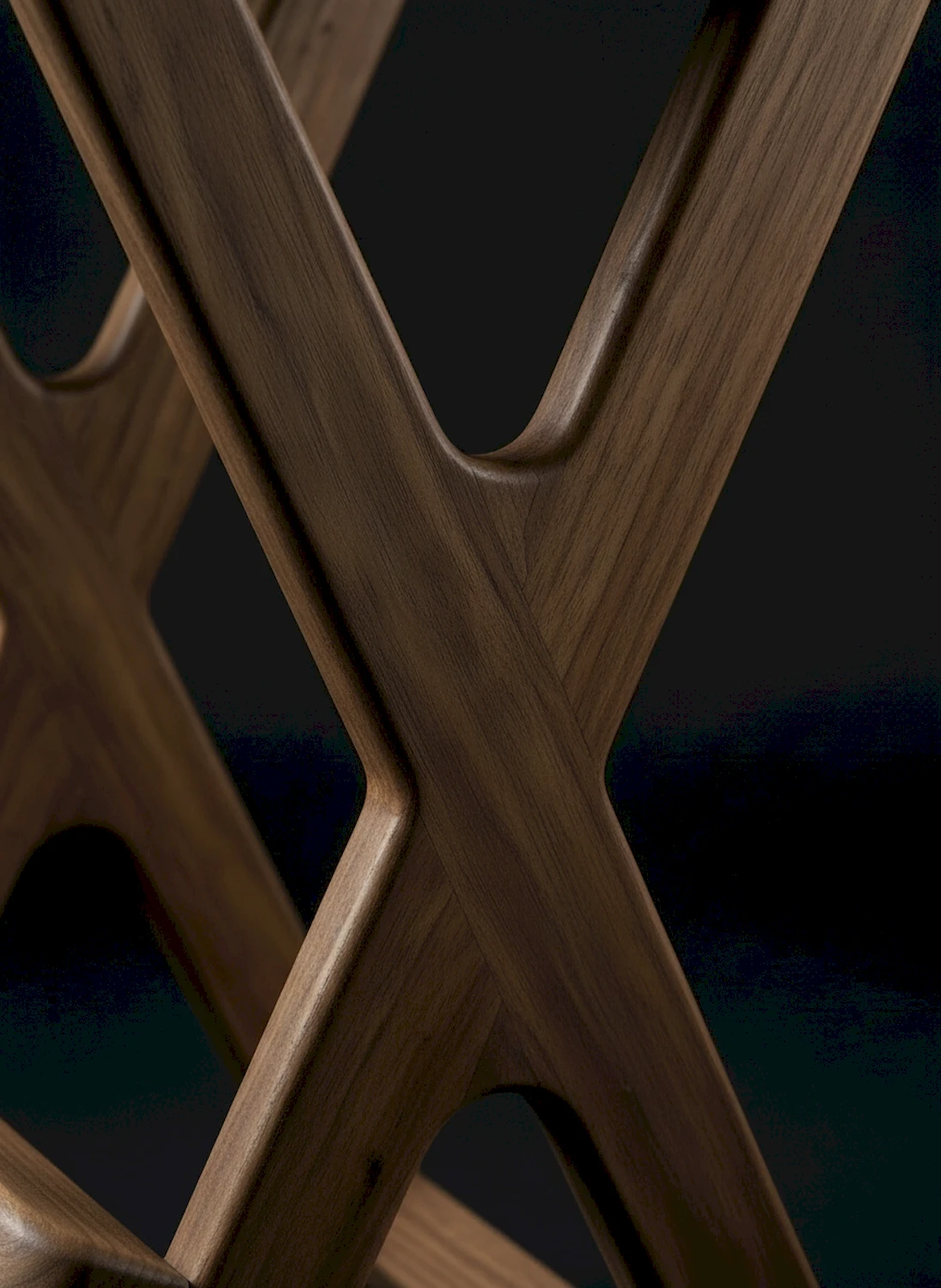 - Каркас и ножки: Изготовлены из массива твёрдых пород дерева с натуральной отделкой, подчеркивающей текстуру древесины.