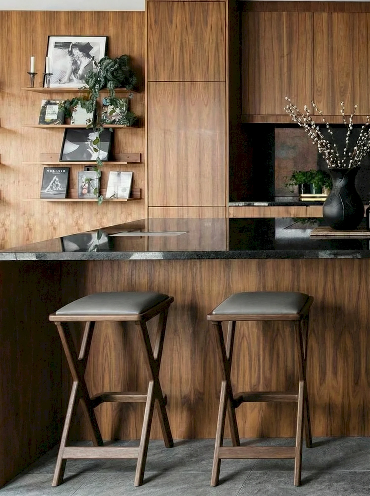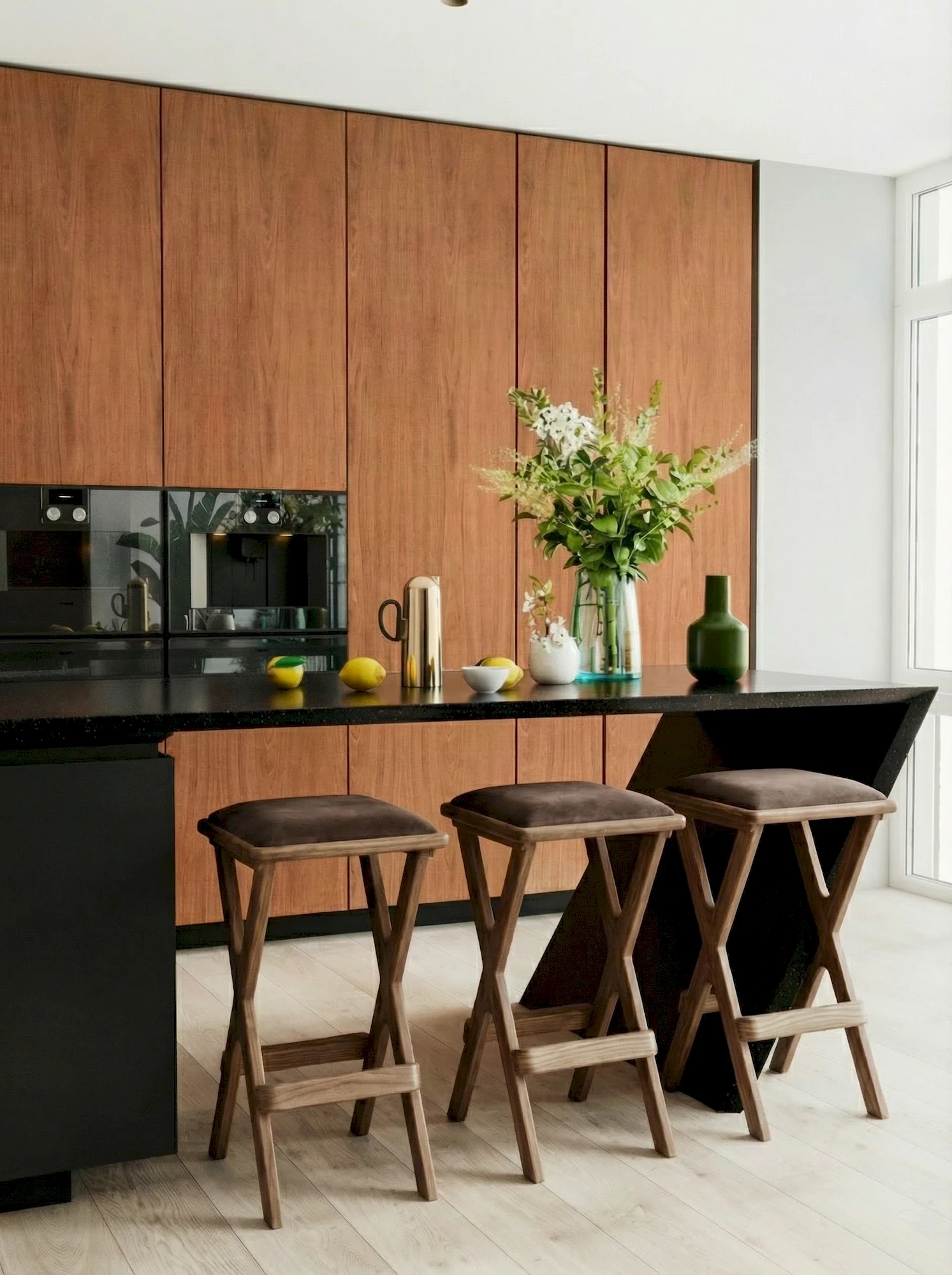 - Лофт и индастриал: Дерево и простая форма создают контраст с кирпичом и металлом, подходят для барной стойки или кухонного острова.