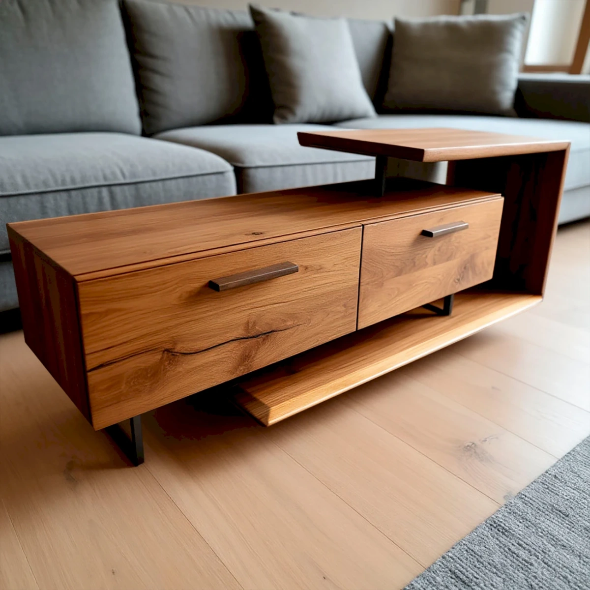 Представляем уникальную дизайнерскую тумбу с подвижной секцией из массива — функциональный арт-объект для вашего интерьера. Благодаря минималистичному дизайну, универсальности и натуральному материалу, она идеально впишется в современные стили: лофт, индустриальный, скандинавский или джапанди. Конструкция из двух частей позволяет изменять длину и геометрию тумбы, подстраивая ее под ваши задачи и пространство. Мы изготовим эту тумбу на заказ по вашим индивидуальным параметрам: точные размеры, отделка и детали конструкции.