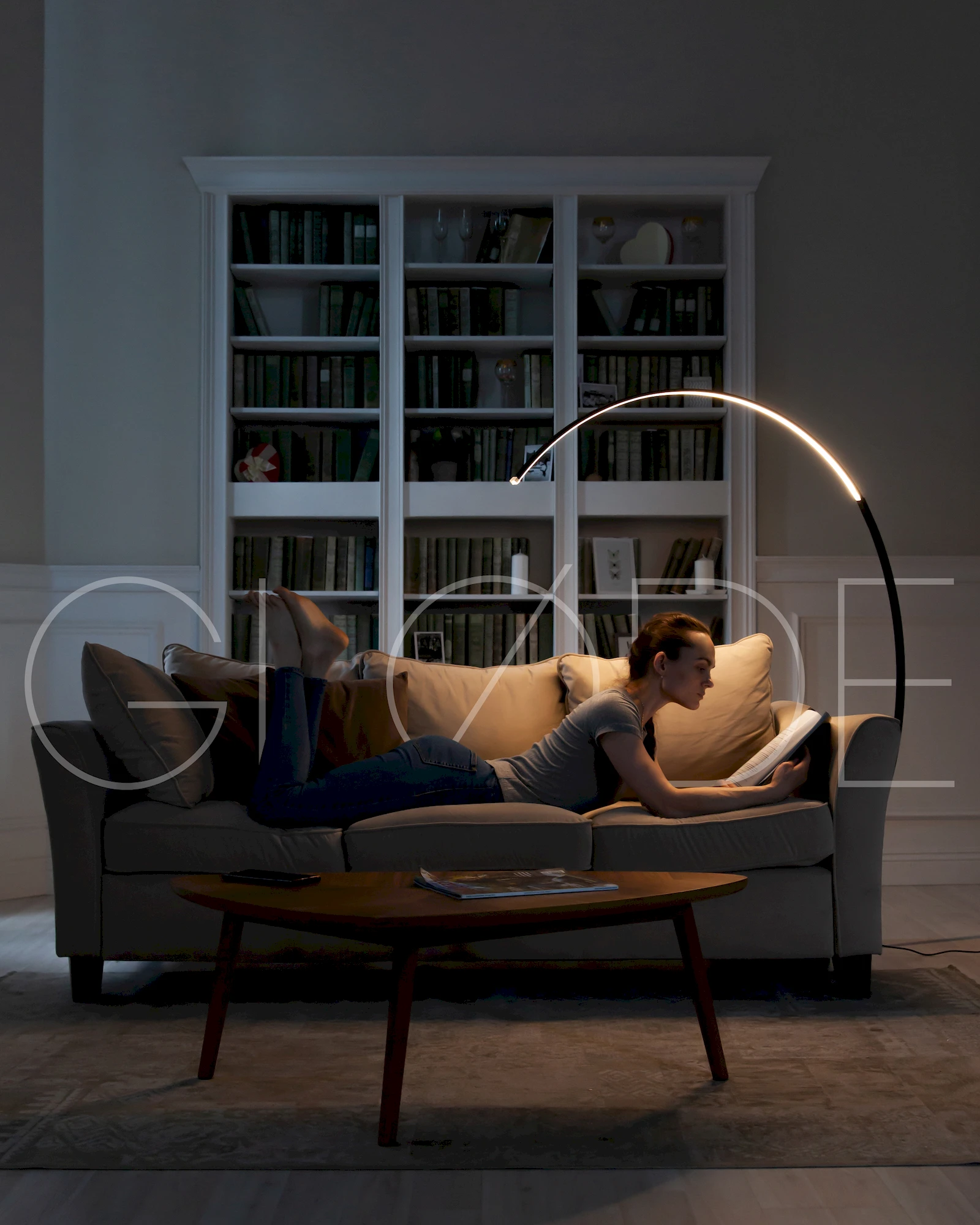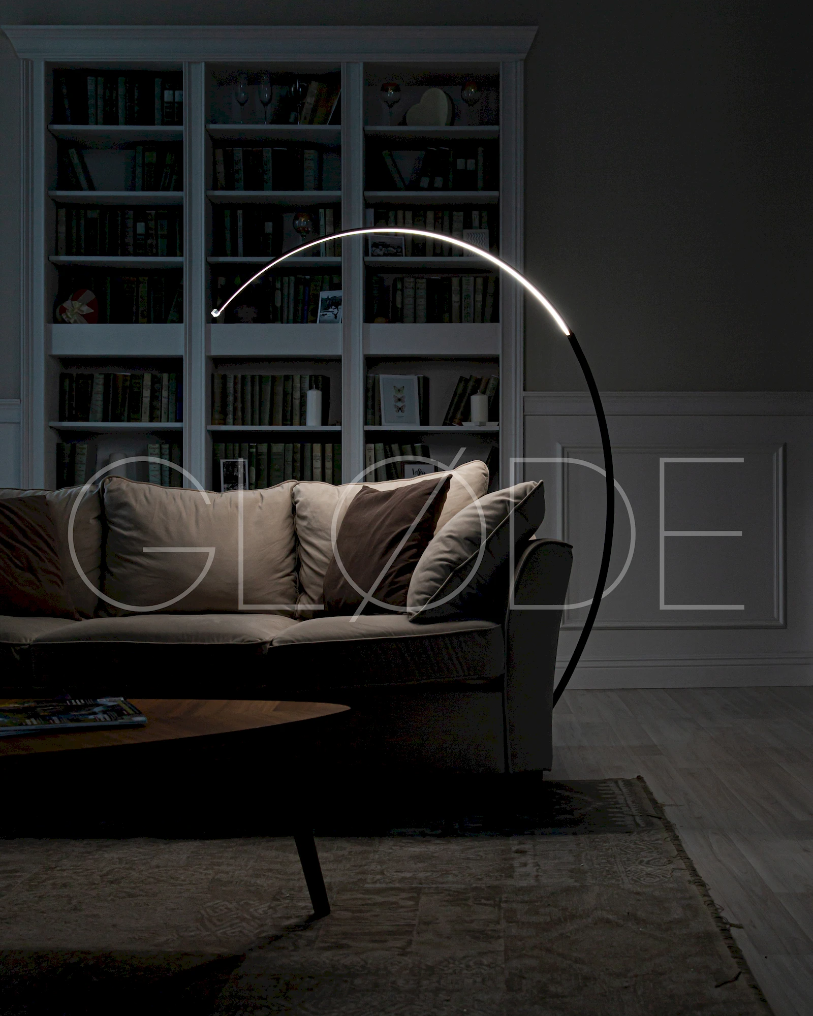 - Дизайн: изящная дугообразная конструкция, напоминающая плавающую линию света. Лаконичный силуэт без лишних деталей делает этот торшер настоящим украшением интерьера.