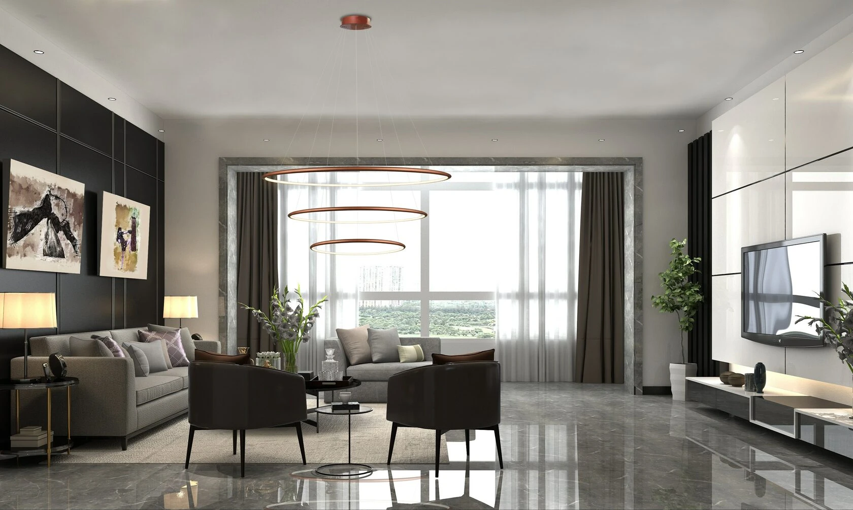 Люстра OLamp Triple: Размер:Ø 60 - 80 - 100 см;Цвет:Черный