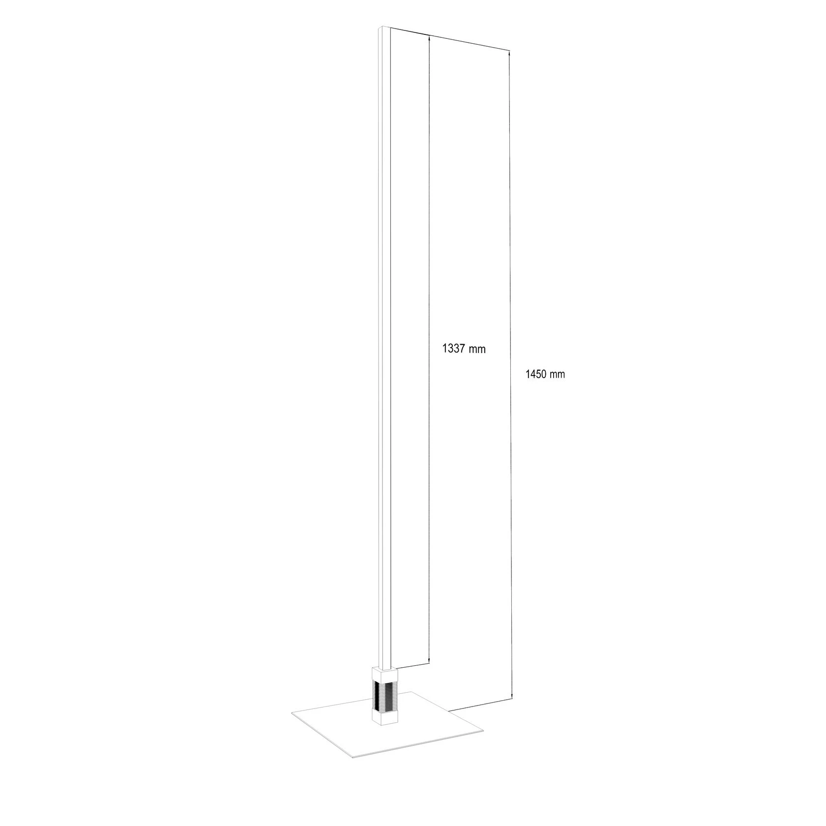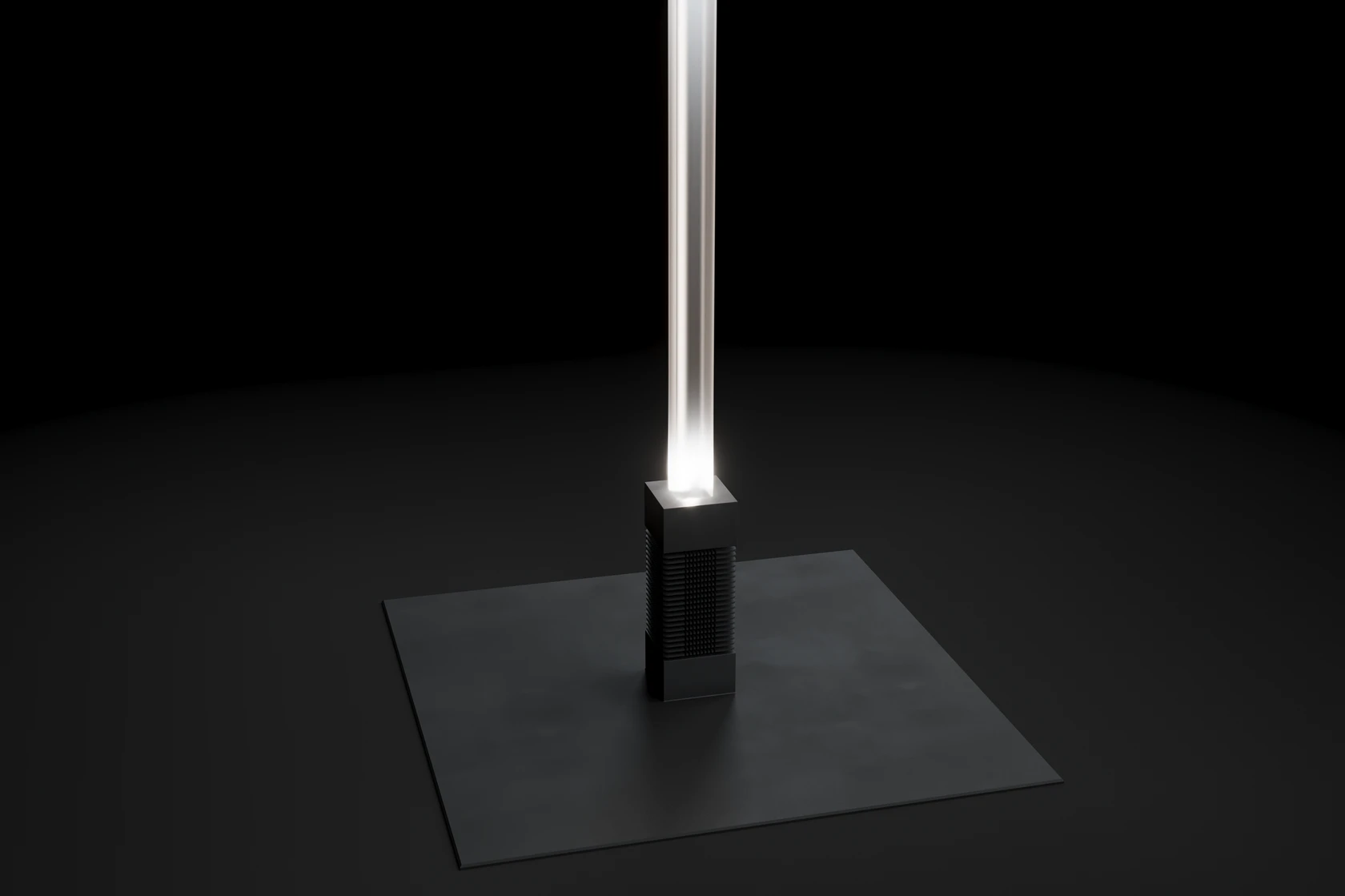 * **Основание:** плоская квадратная платформа из матового металла, обеспечивающая максимальную устойчивость. * **Световой модуль:** вертикальный стержень с интегрированным LED-источником. * **Рассеиватель:** матовое стекло с трещинами высокого класса, равномерно распределяющее свет без бликов.