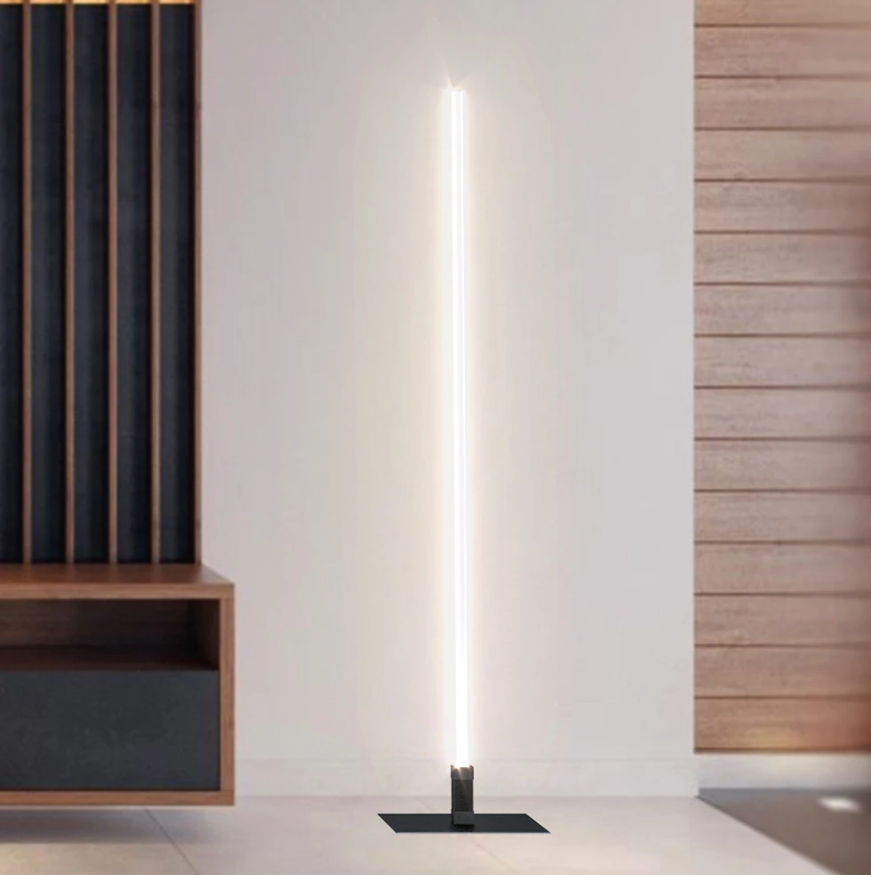 Дизайн торшера представлен лаконичной вертикальной конструкцией в виде светящегося стержня. Чистые линии и отсутствие лишнего декора создают ощущение лёгкости и простора.
