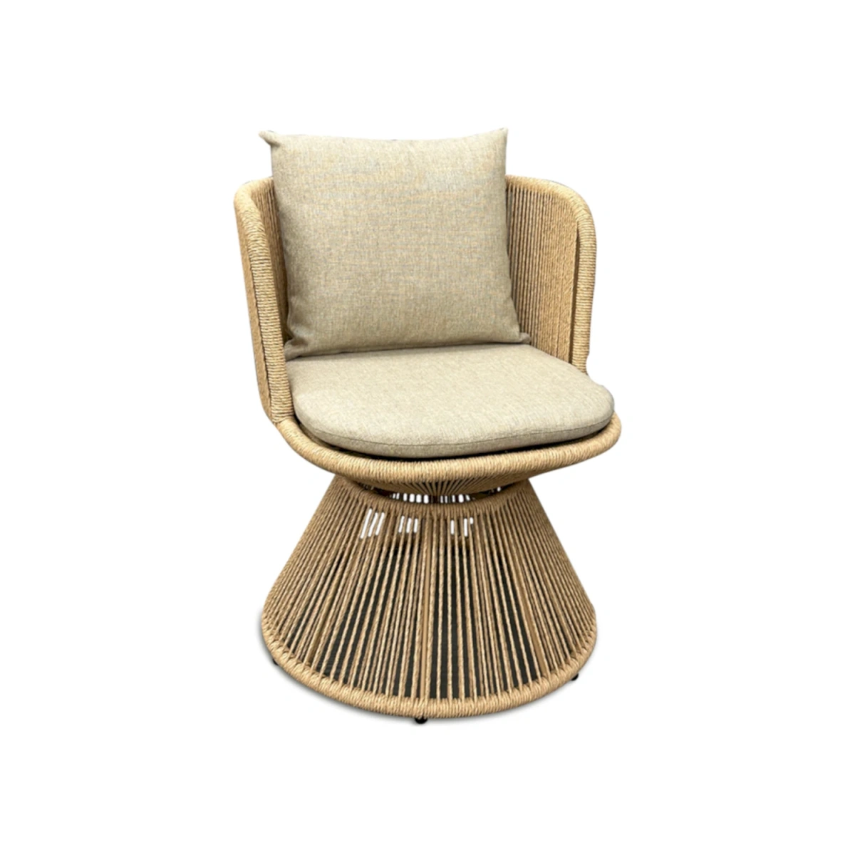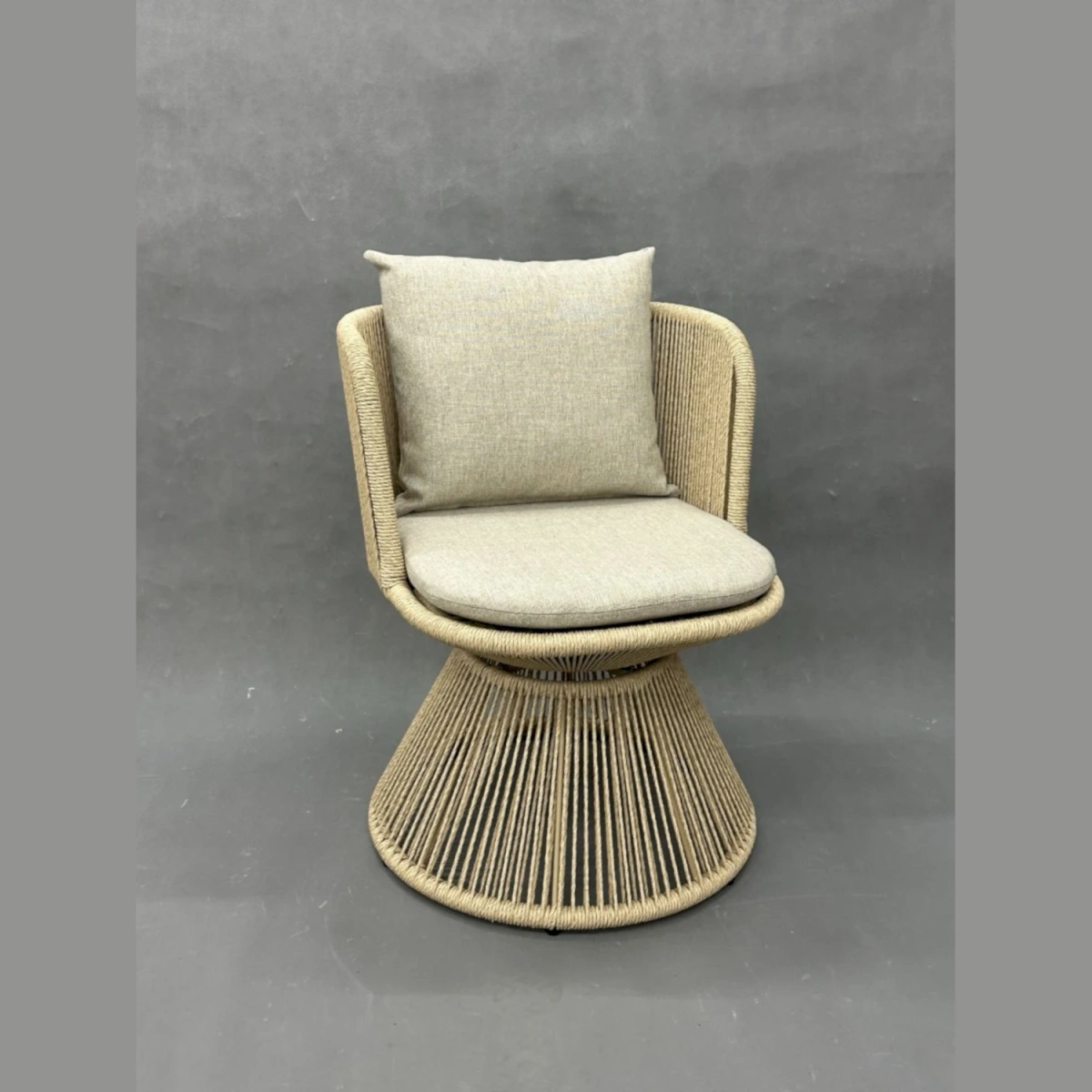 Преобразите своё пространство с помощью стильного и удобного плетёного кресла из ротанга с подушкой! Эта модель сочетает в себе элегантность плетёной мебели и практичность современных материалов. Вращающийся механизм добавит комфорта в повседневное использование — теперь вы сможете легко менять угол обзора, не вставая с кресла.
