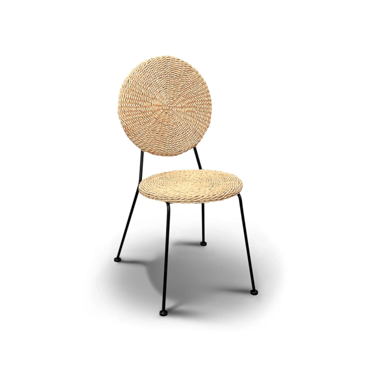 Универсальность — одно из главных преимуществ этого стула из ротанга на металлических ножках. Используйте его в разных пространствах: