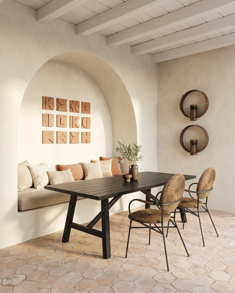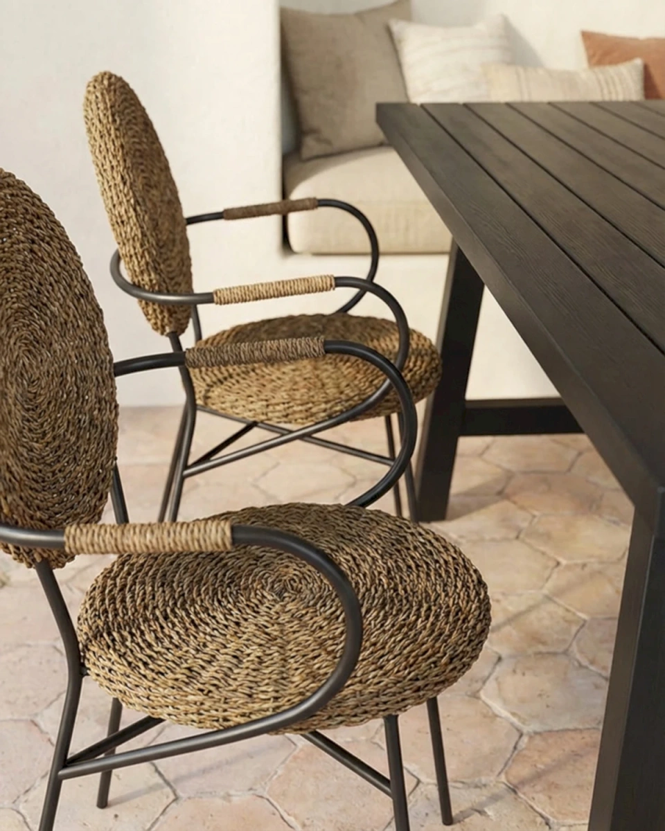 Этот плетёный стул для террасы с металлическим каркасом идеально дополнит следующие стили: