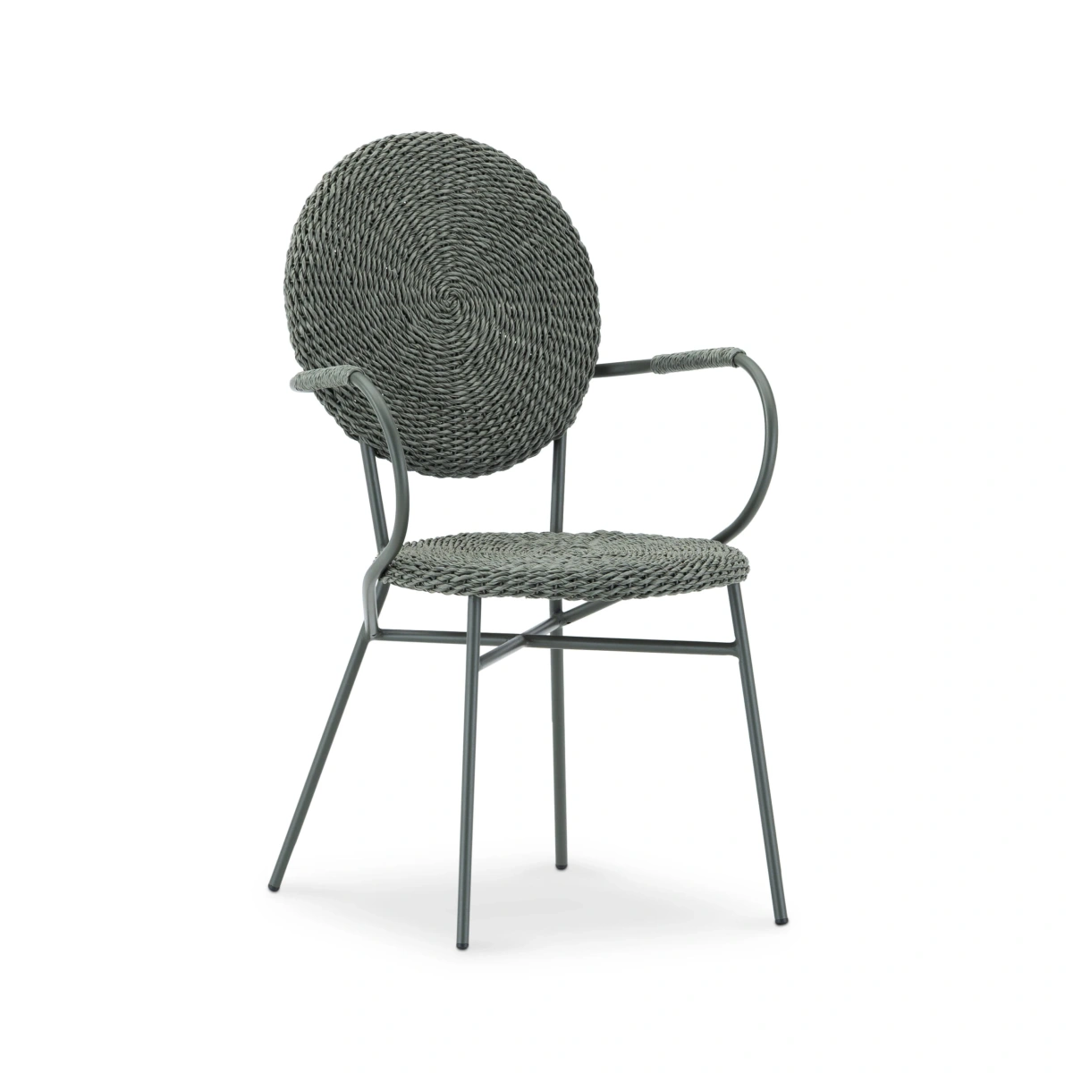 Дополните террасы и зоны отдыха у бассейна стильной и практичной мебелью — плетёным стулом для террасы с металлическим каркасом.