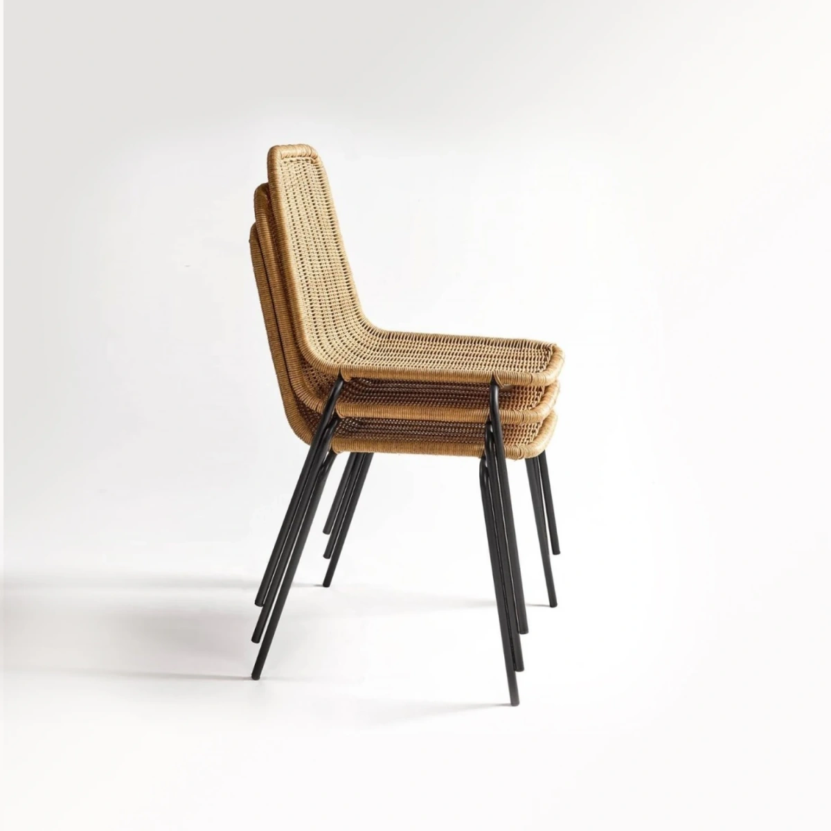 Откройте для себя мир удобной и стильной мебели с нашим плетёным штабелируемым стулом! Сочетание плетения из искусственного ротанга и прочного металлического каркаса делает этот стул идеальным выбором для террасы, кухни, кафе или домашнего интерьера. Практичность штабелирования сэкономит место, а элегантный дизайн украсит любое пространство.