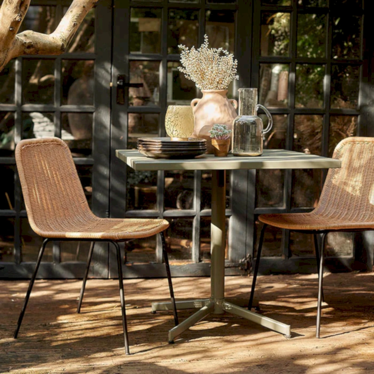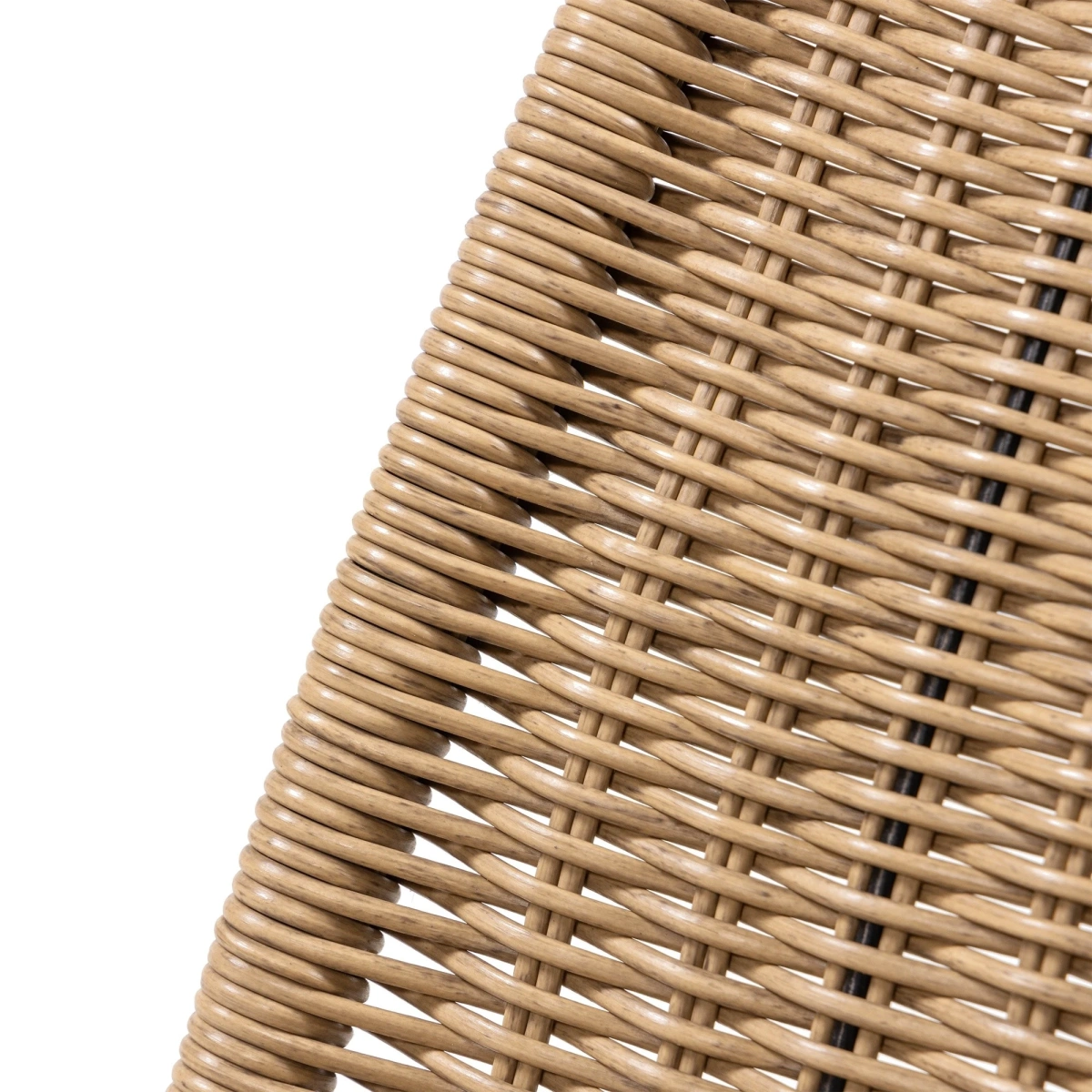 Материал сиденья и спинки: плетёный искусственный ротанг — экологичный, лёгкий и долговечный материал, устойчивый к износу и перепадам температур. Идеален для плетёных стульев для кафе на открытом воздухе.
