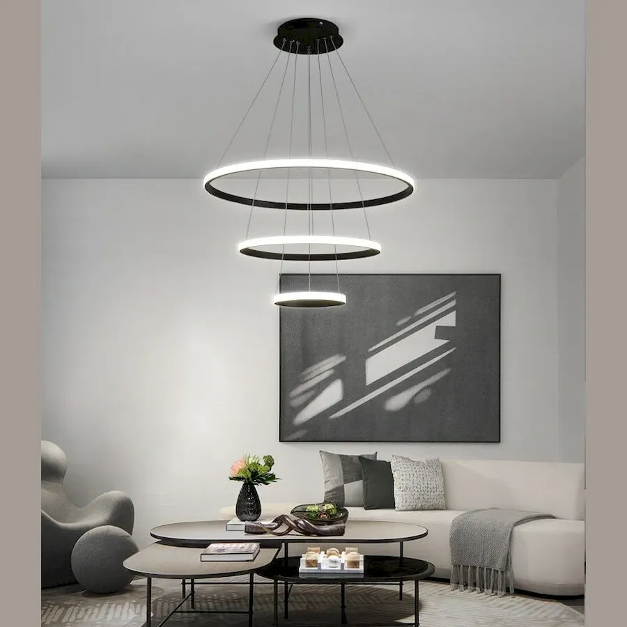 Эксклюзивная подвесная люстра OLamp Triple Inverse с тремя светодиодными кольцами — синтез элегантности, футуризма и энергоэффективного освещения