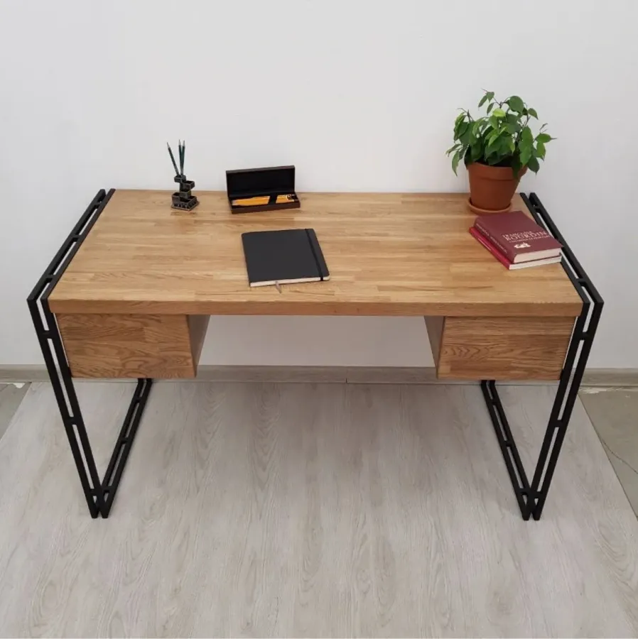 Письменный стол ФОЛКЕР — индустриальный шарм и натуральная эстетика Письменный стол ФОЛКЕР воплощает лучшие черты стиля лофт: прочность, функциональность и выразительную простоту.  Рабочий стол с массивной столешницей 40мм из цельноламельного дуба и оригинальным каркасом из металлического профиля выполненный в классическом стил Лофт спроектирован так, что визуально облегчает конструкцию и позволяет...