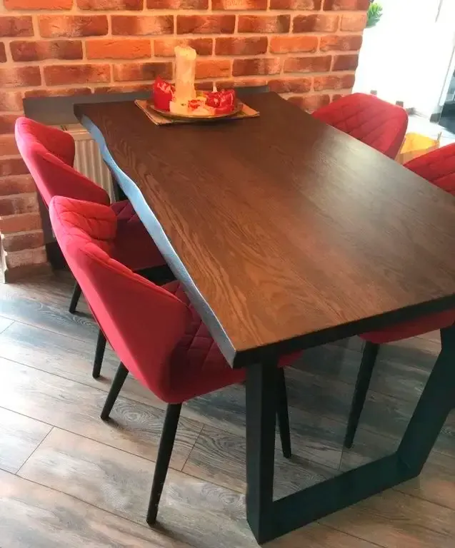 Обеденный стол из массива дуба с эффектом "живого края" Этот обеденный стол станет центром притяжения в вашей кухне или столовой. Массивная столешница из цельного дуба толщиной 40 мм с естественным "живым краем" подчеркивает природную красоту дерева. Сочетание теплого натурального дерева и индустриального металлического каркаса в стиле лофт создает уникальный характер. Стол рассчитан на 4-6 человек,...