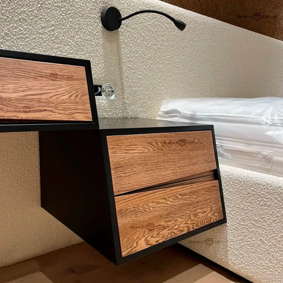Черная прикроватная тумба с дубовым фасадом — искусство в деталях