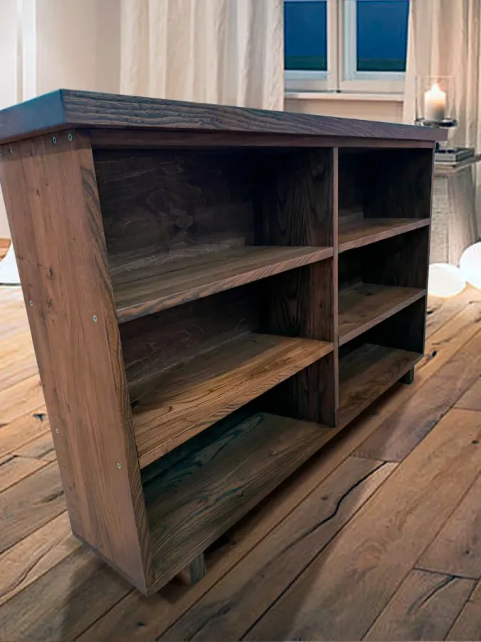 Низкий стеллаж из массива дуба или карагача с полками 150 см