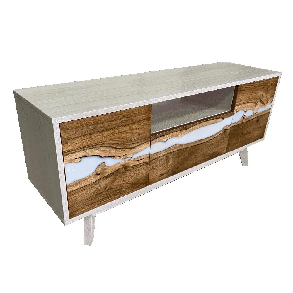 По-настоящему красивое и оригинальное изделие из бюджетного сегмента. Корпус тумбы и внутренние детали выполнены из шпонированного МДФ, финишное покрытие делалось экологически чистыми маслами в светлой тонировке. Фасады изделия представлены в более эксклюзивном материале, массив грецкого ореха, в сочетании с белой эпоксидной смолой. Все трещинки, сучки и природные неровности на поверхности фасадов,...